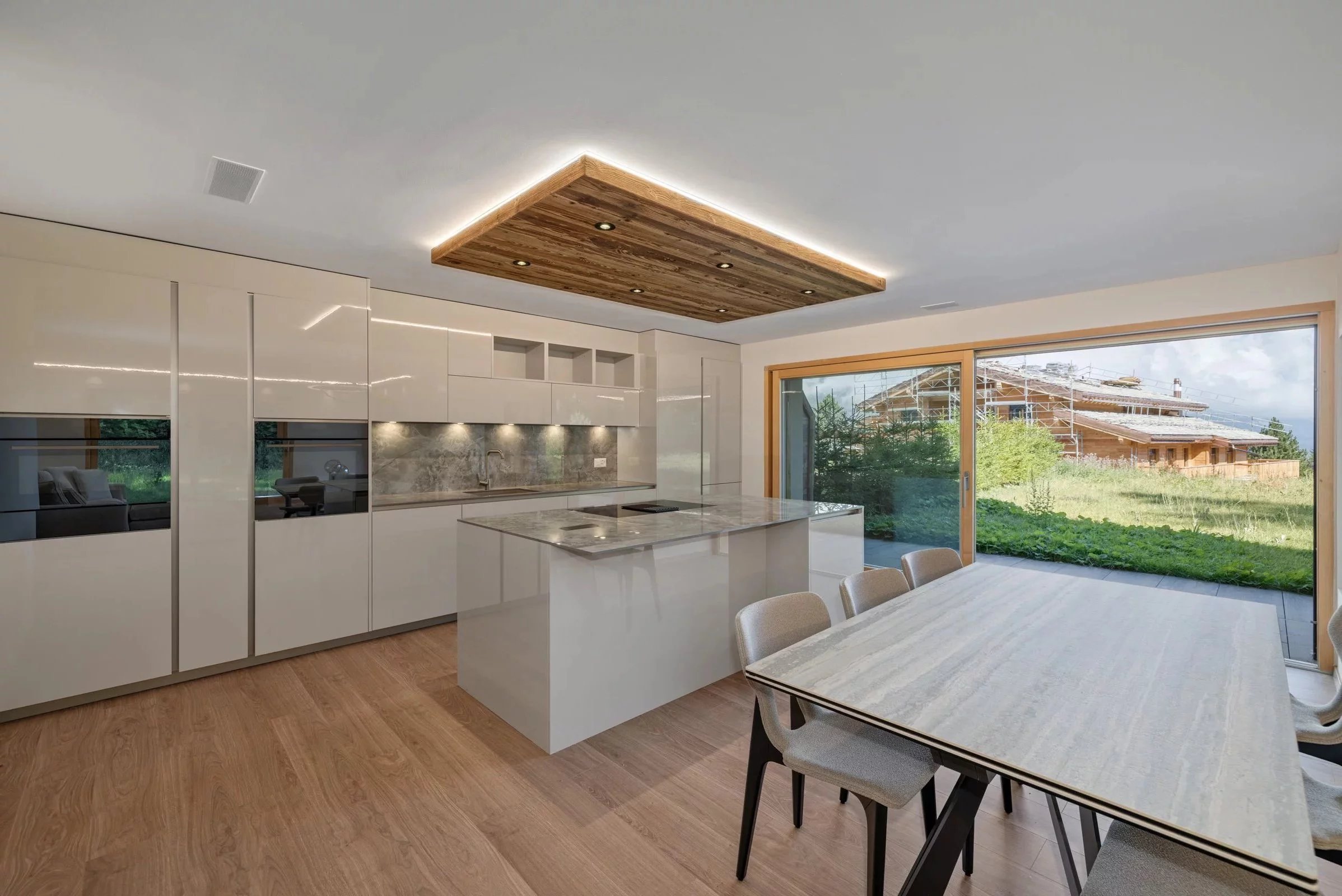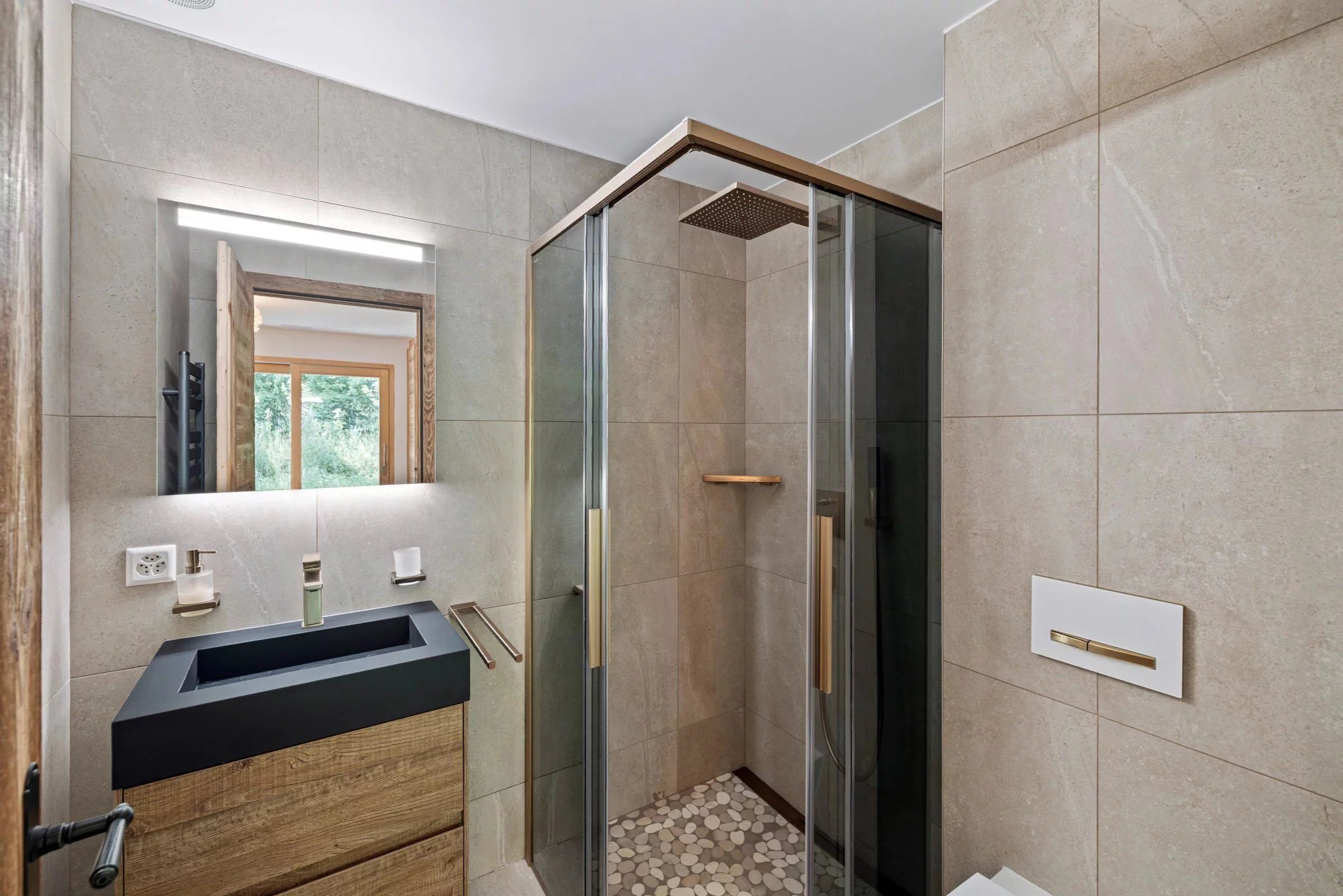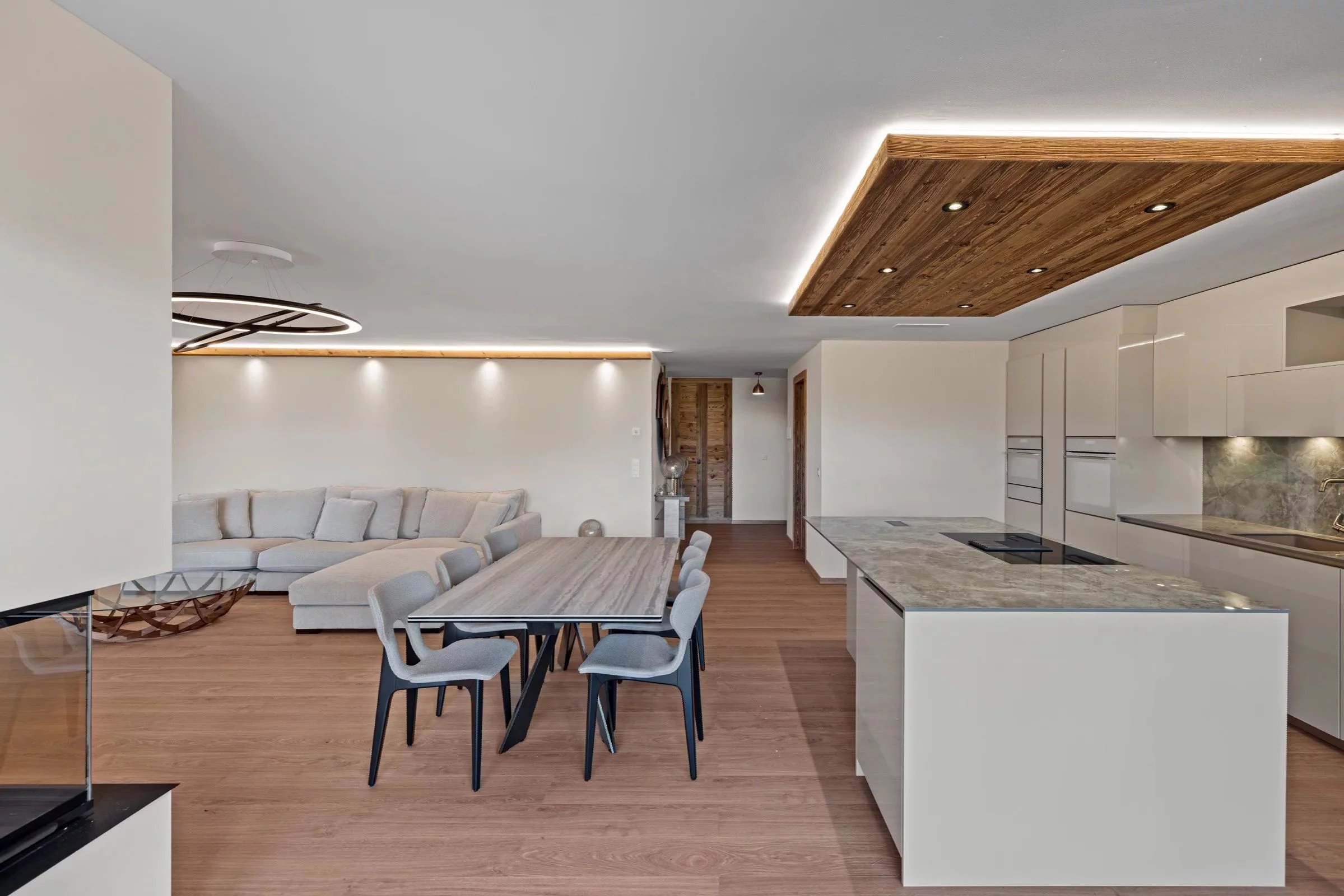 Willkommen in dieser Luxuswohnung mit einer großzügigen Wohnfläche von 133 m², die ein luxuriöses und funktionelles Lebensumfeld bietet. Schon beim Betreten der Wohnung werden Sie einen großen Wohnraum entdecken, der aus einem gemütlichen Wohnzimmer mit Kamin, einer offenen Küche und einem geräumigen Esszimmer besteht. Zwei Schlafzimmer verfügen jeweils über ein eigenes Badezimmer, während ein drittes Schlafzimmer mit Einbauschränken den Nachtbereich vervollständigt und Komfort und Privatsphäre für alle Bewohner garantiert. Ein Gäste-WC verleiht der Einrichtung eine praktische Note. Das Herzstück dieser Wohnung ist zweifelsohne die große Terrasse, die von einem Privatgarten begleitet wird. Im Untergeschoss sorgt ein Innenparkplatz für einen bequemen Zugang, und der Keller bietet zusätzlichen Stauraum.