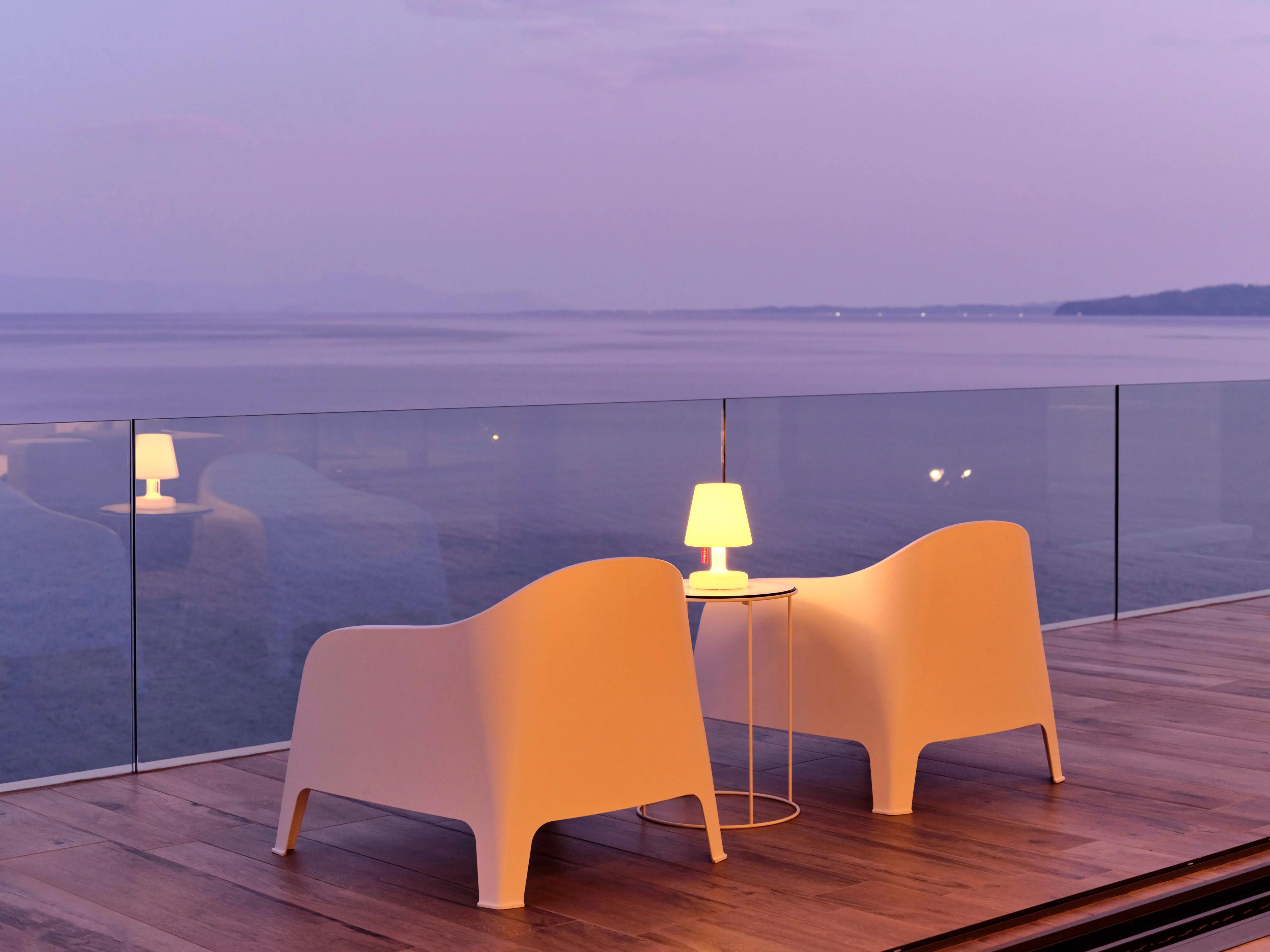Das Design des Anwesens, das die Landschaft überragt, verbindet meisterhaft moderne Raffinesse mit der natürlichen Schönheit der Umgebung und schafft so eine perfekte Integration von Innen- und Außenräumen. Große Fenster und großzügige Veranden bieten einen atemberaubenden Blick auf das azurblaue Meer und enthüllen ein sich ständig veränderndes Netz aus Farben und Licht, das die Sinne fesselt.