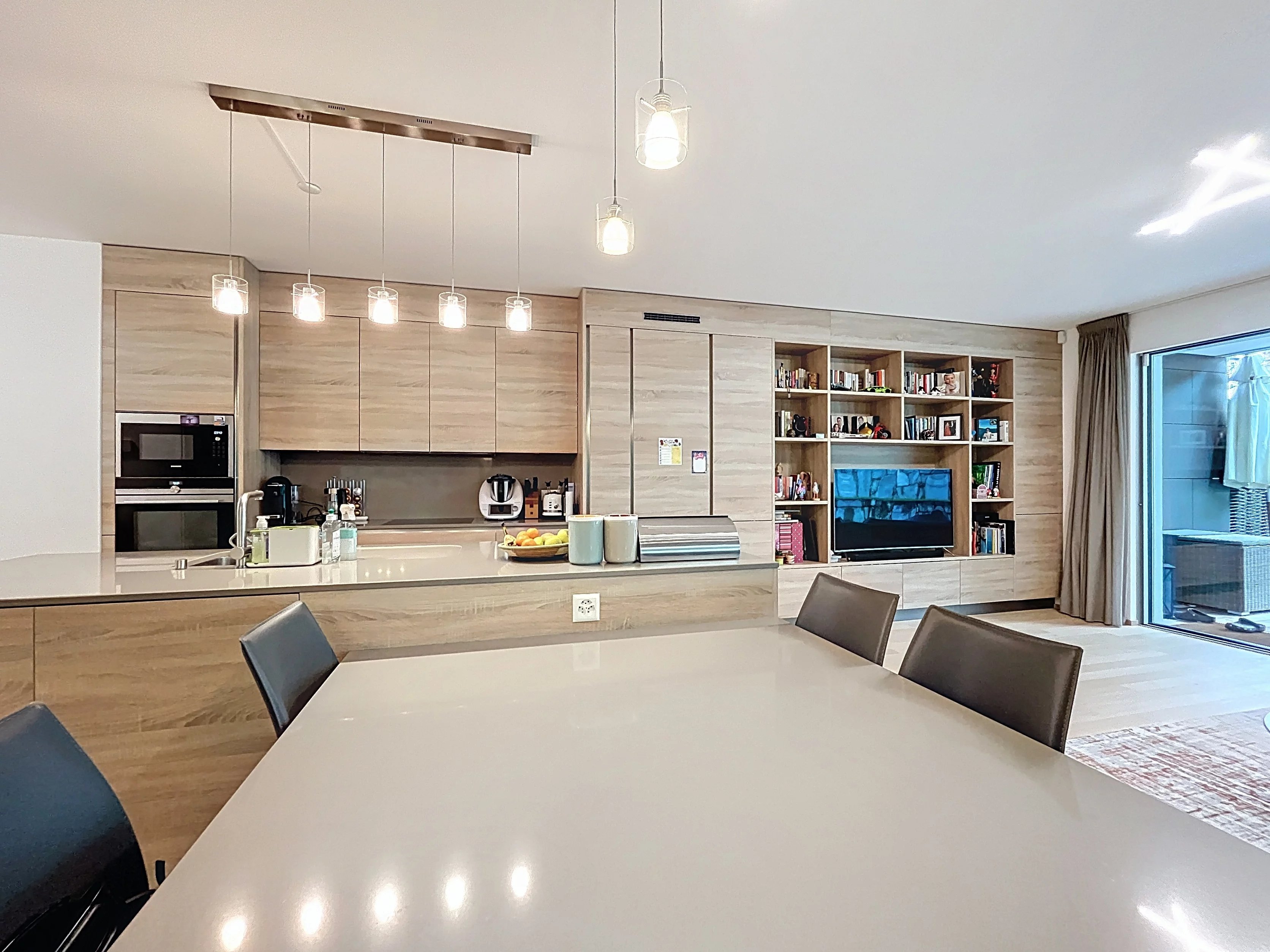 Diese elegante 5,5-Zimmer-Wohnung befindet sich im Herzen von Nyon in einem 2016 erbauten Gebäude und bietet eine optimale Aufteilung für das Familienleben und die Telearbeit. Nach dem Betreten des Apartments gelangt man in einen großen Wohnbereich, der aus einem großzügigen Wohnzimmer, einem einladenden Esszimmer und einer zeitgenössischen offenen Küche besteht - ein idealer Ort, um Gäste zu empfangen. Das Ganze öffnet sich ebenerdig zu einer wunderschönen Terrasse und einem privaten Garten, die einen intimen Außenbereich zum Entspannen, Grillen und Spielen für Kinder bieten.