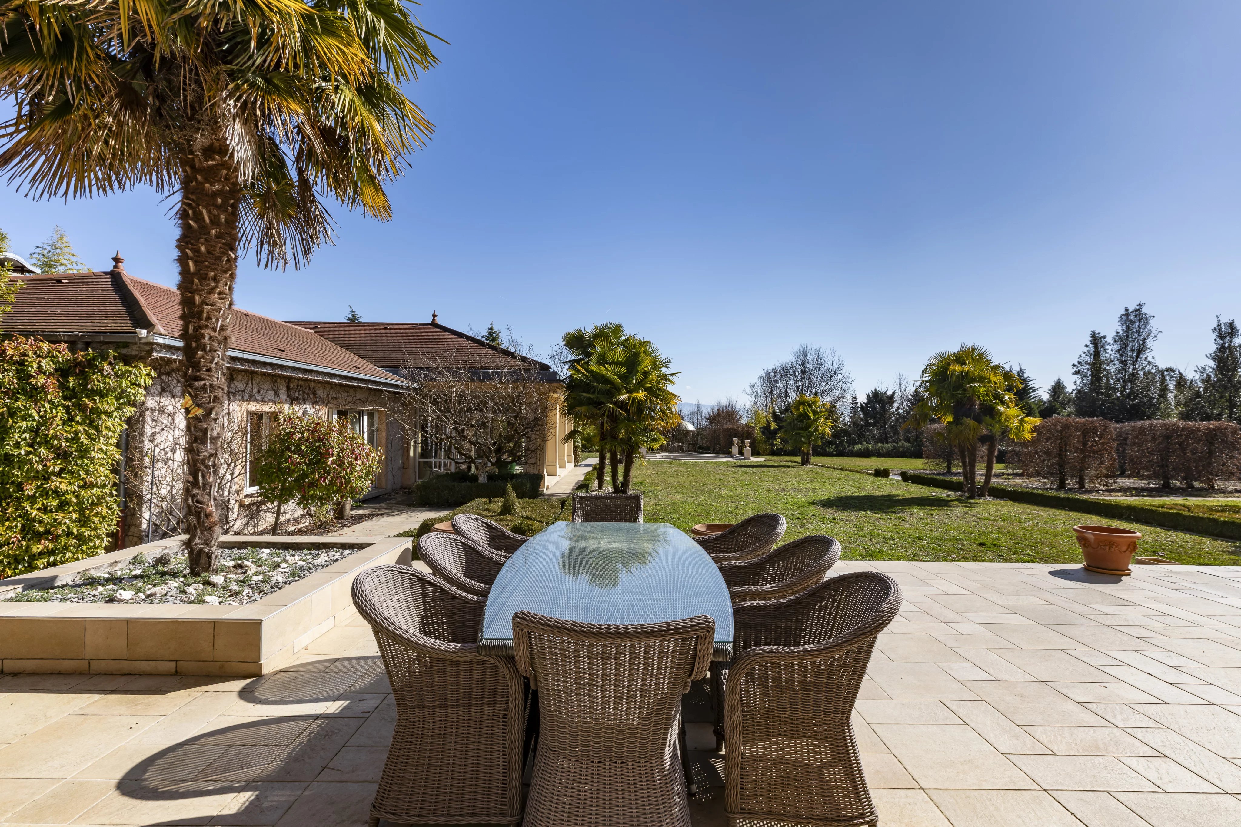 Demeure d'exception dans un parc paysagé avec vue Mont-Blanc et terrain constructible