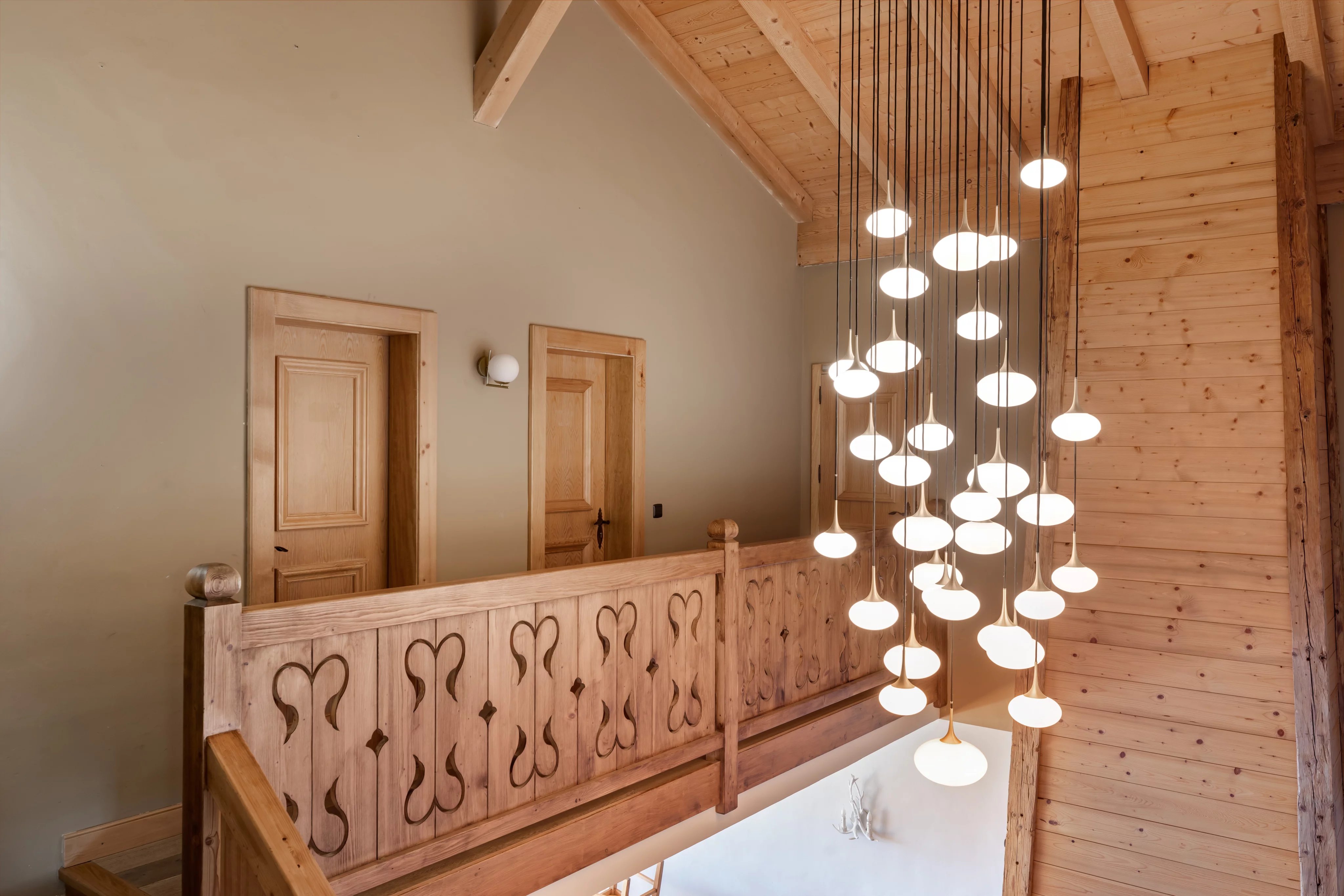 Le chalet dispose également d’un sous-sol complet comprenant un garage pour 8 véhicules, un atelier, une cave, ainsi qu’un local avec casiers à skis et chauffe-chaussures.