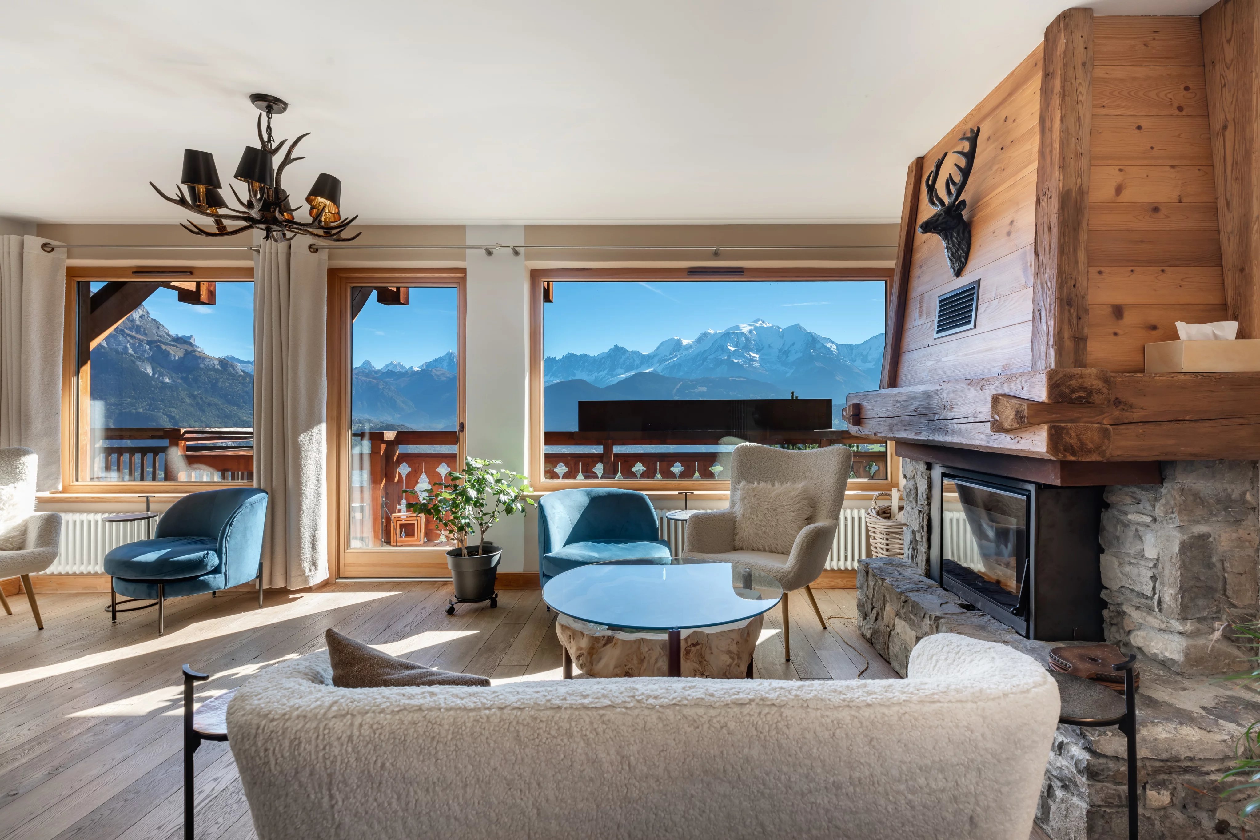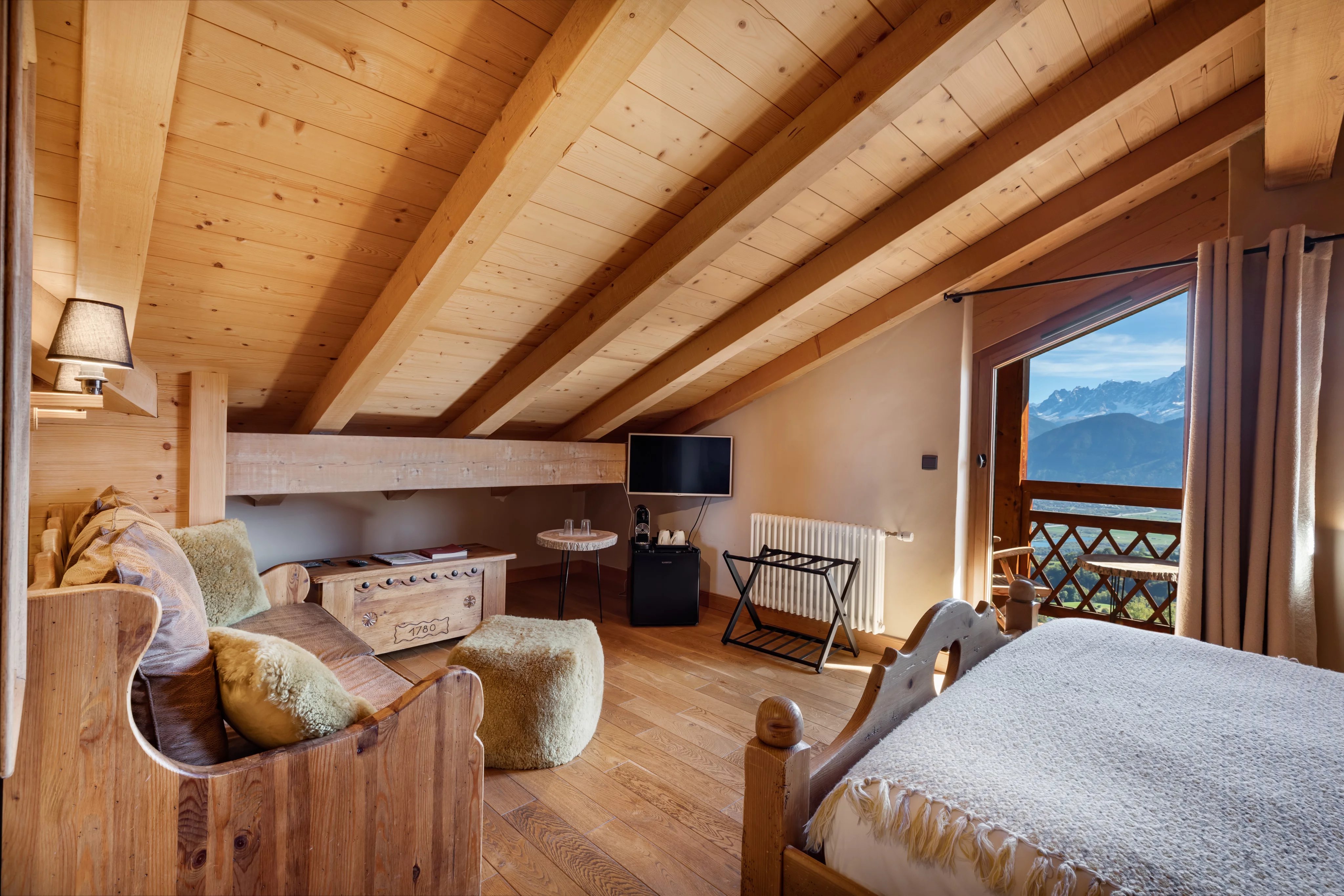 Son architecture soignée offre des chambres ouvertes sur l’extérieur, bénéficiant toutes d’une vue à couper le souffle sur le massif du Mont-Blanc, les Fiz et les Aravis.