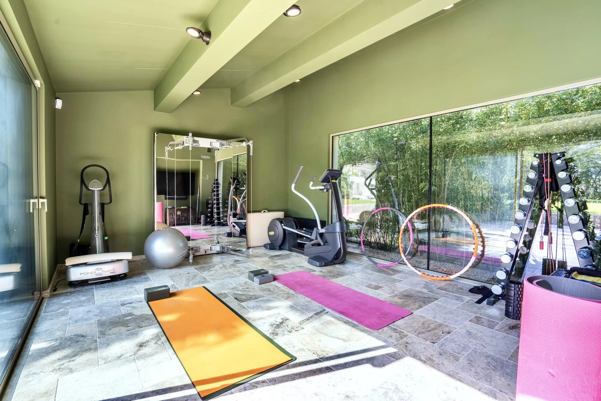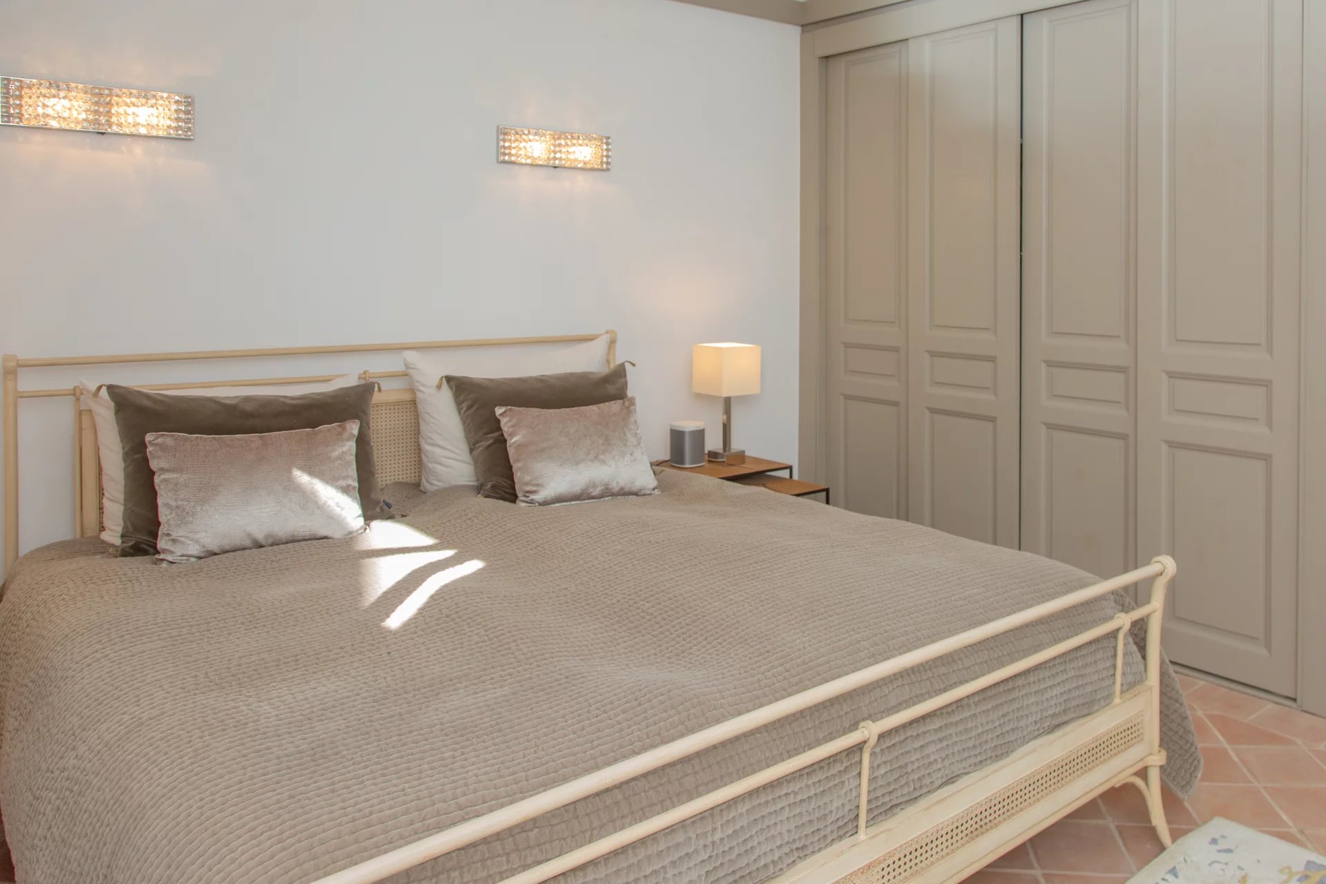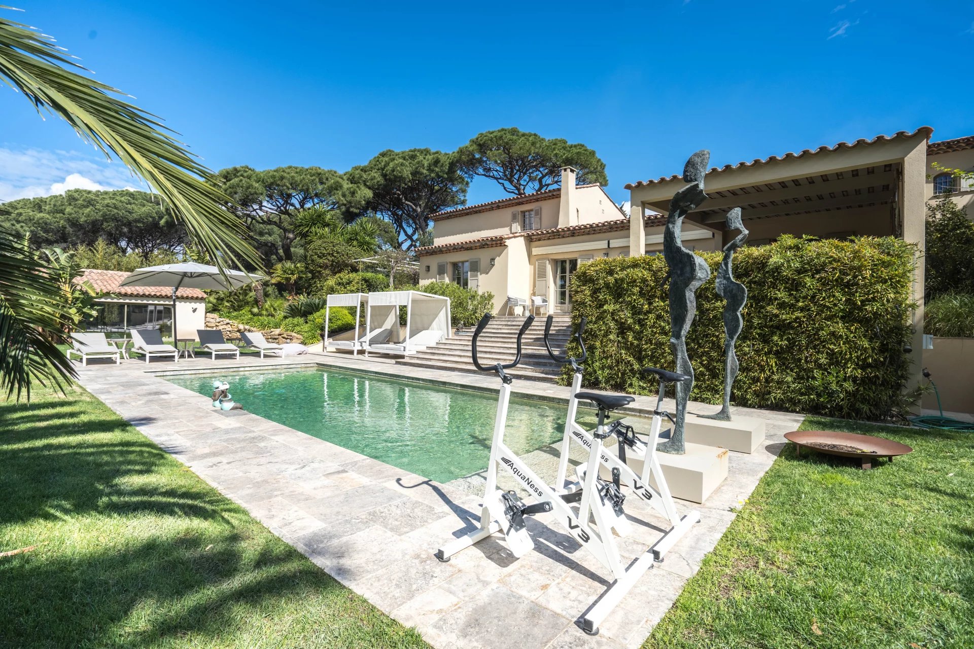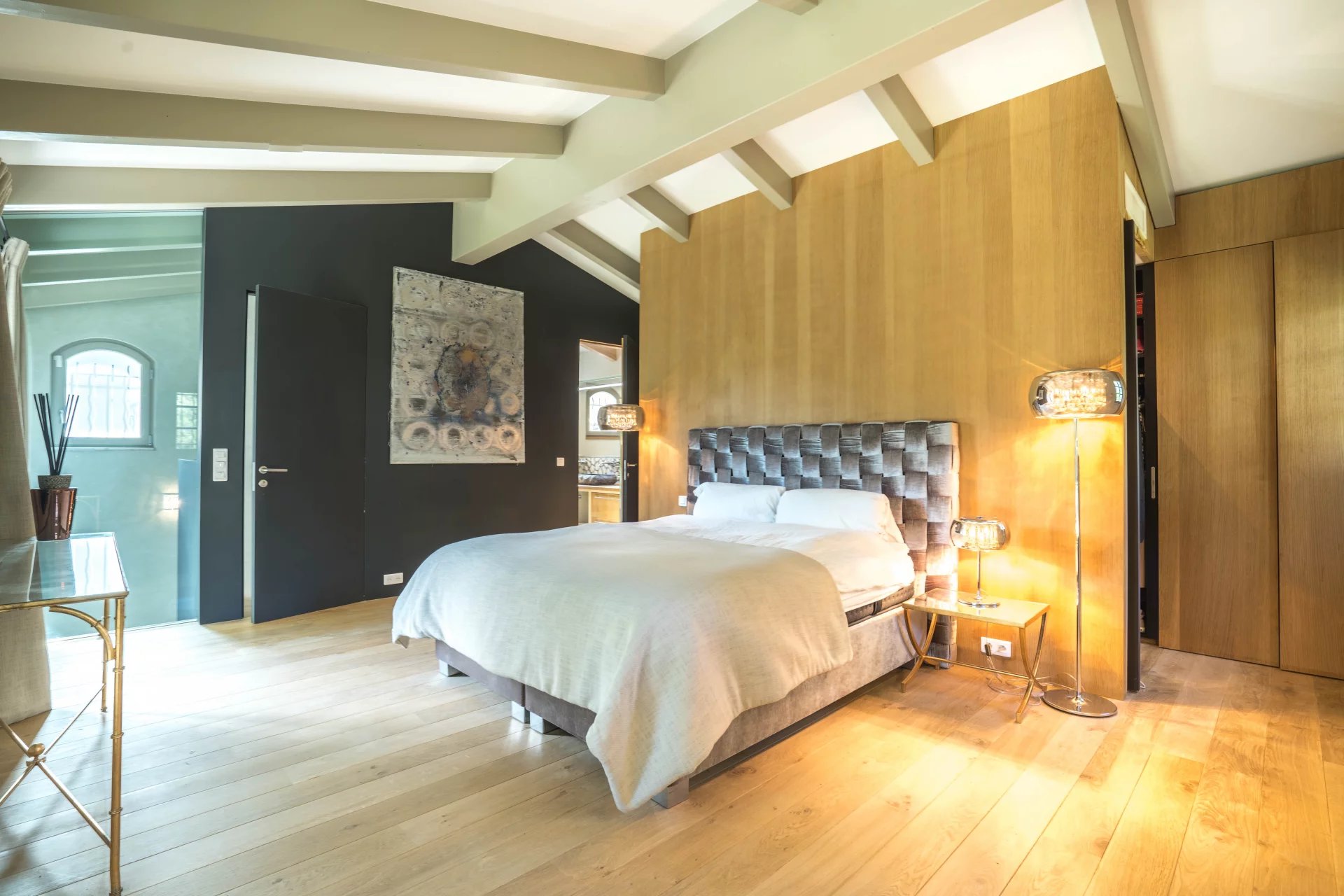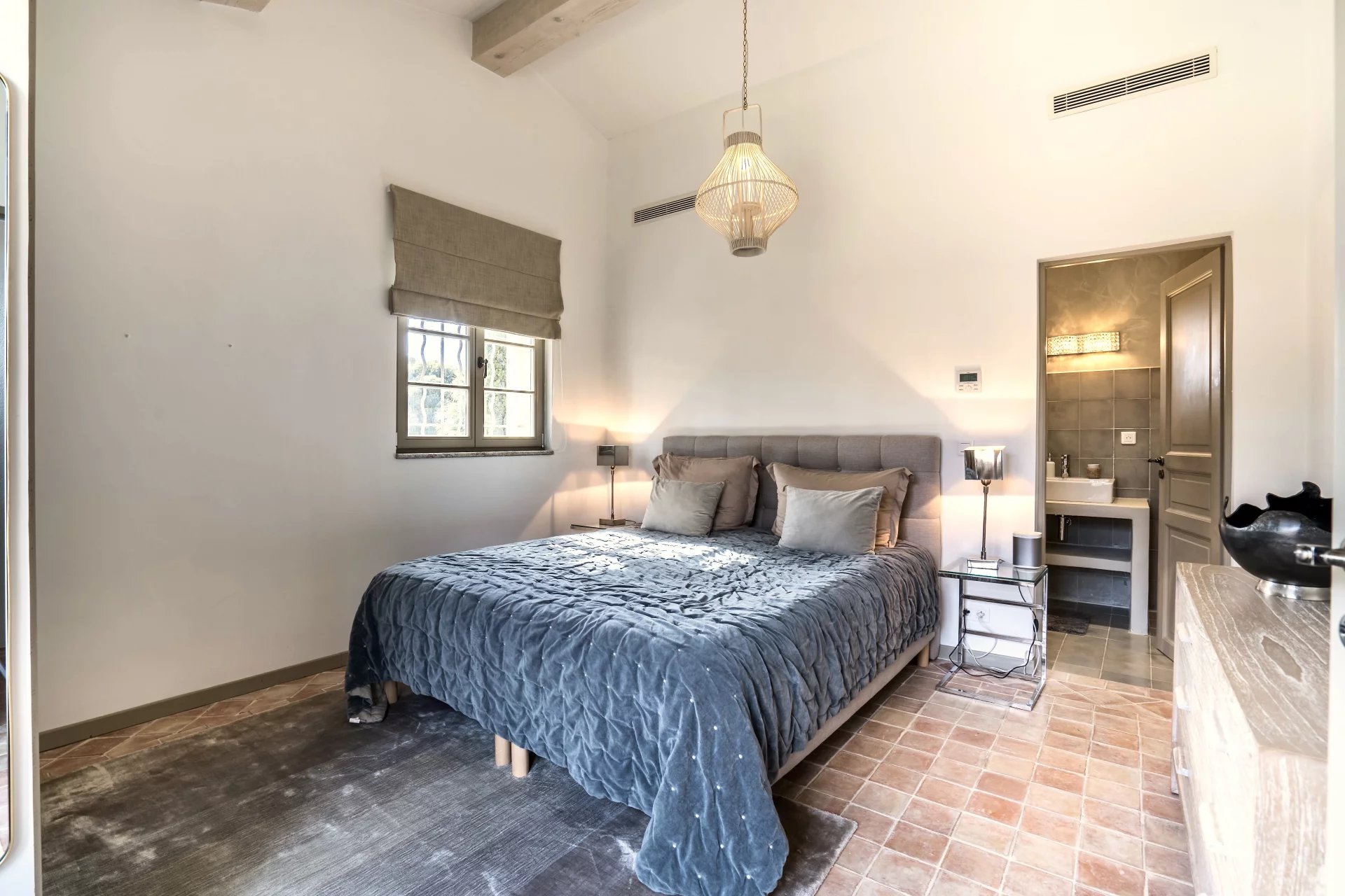 Cinq chambres dont une suite parentale sont réparties sur les 2 niveaux. La villa bénéficie d'une salle de sport, d'un sauna et d'une