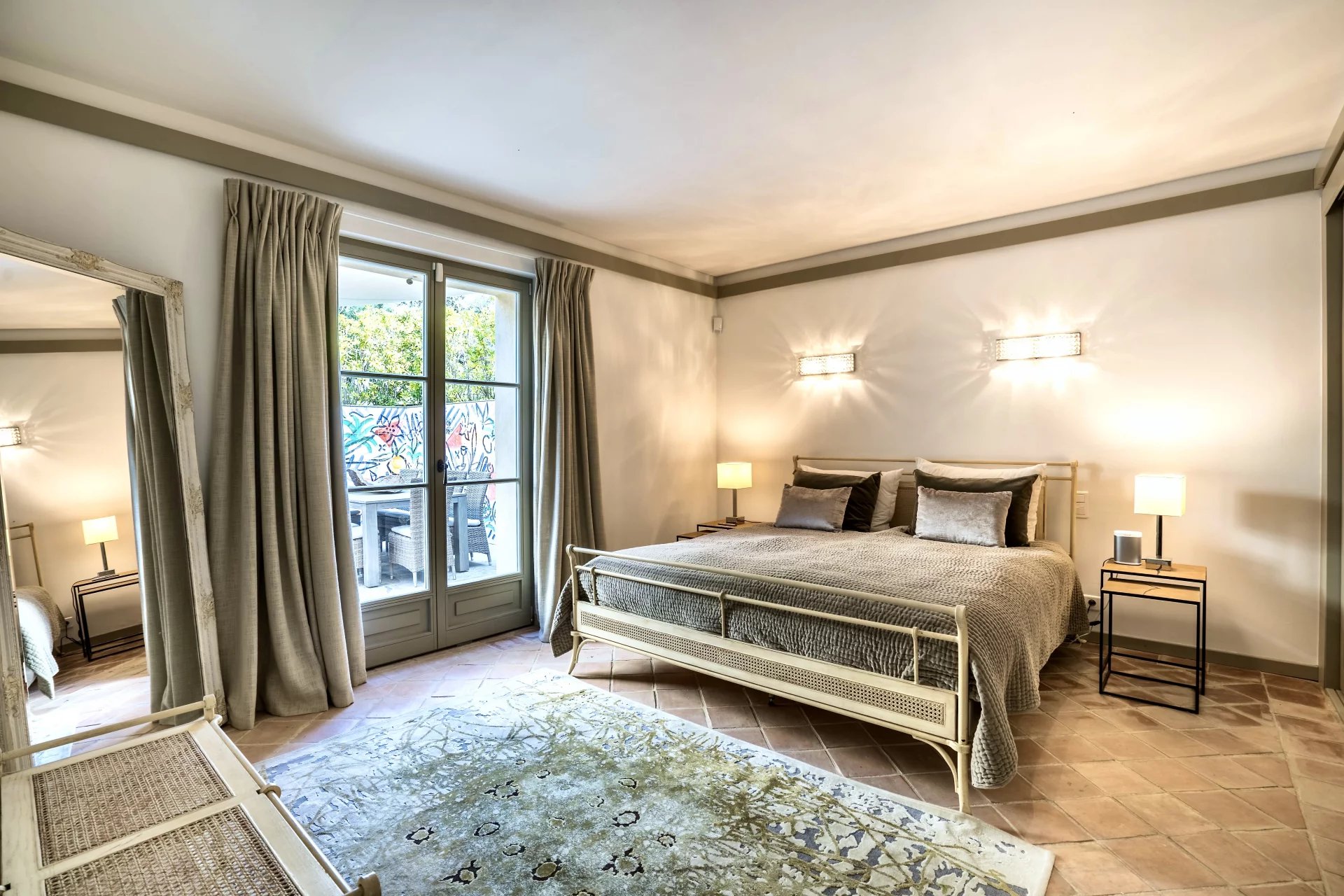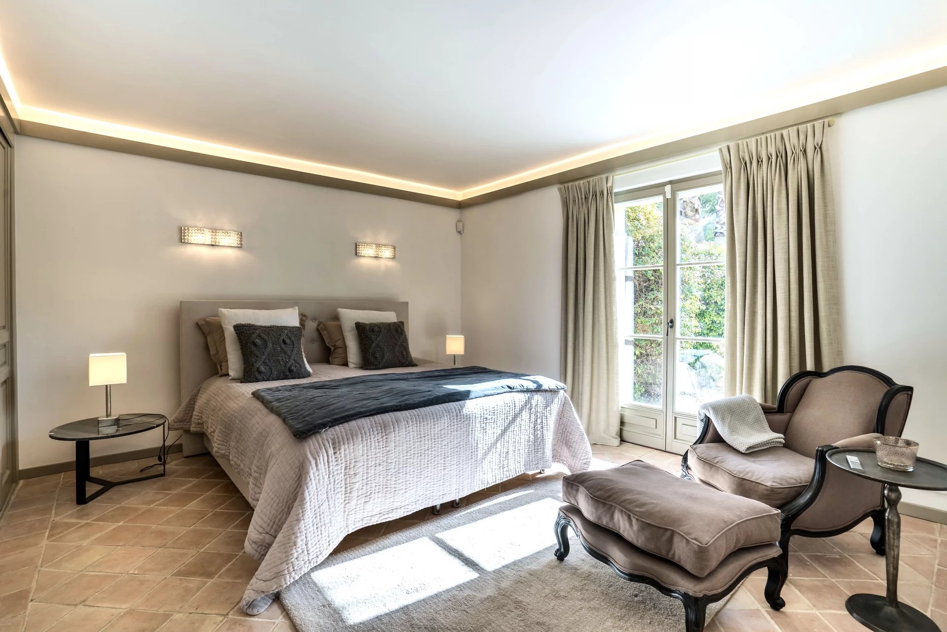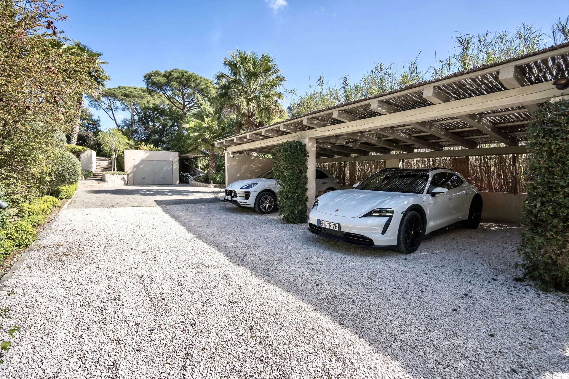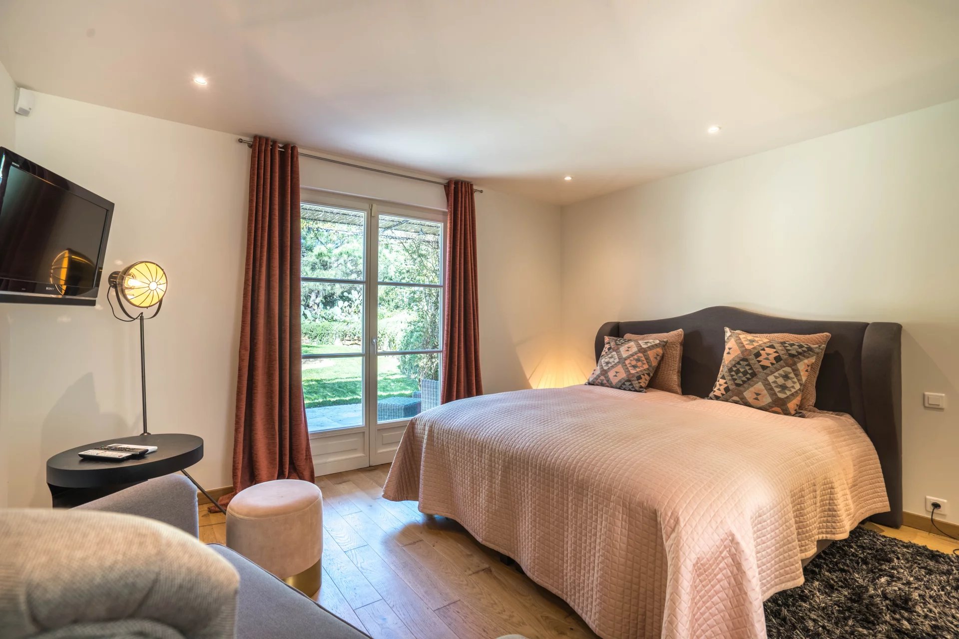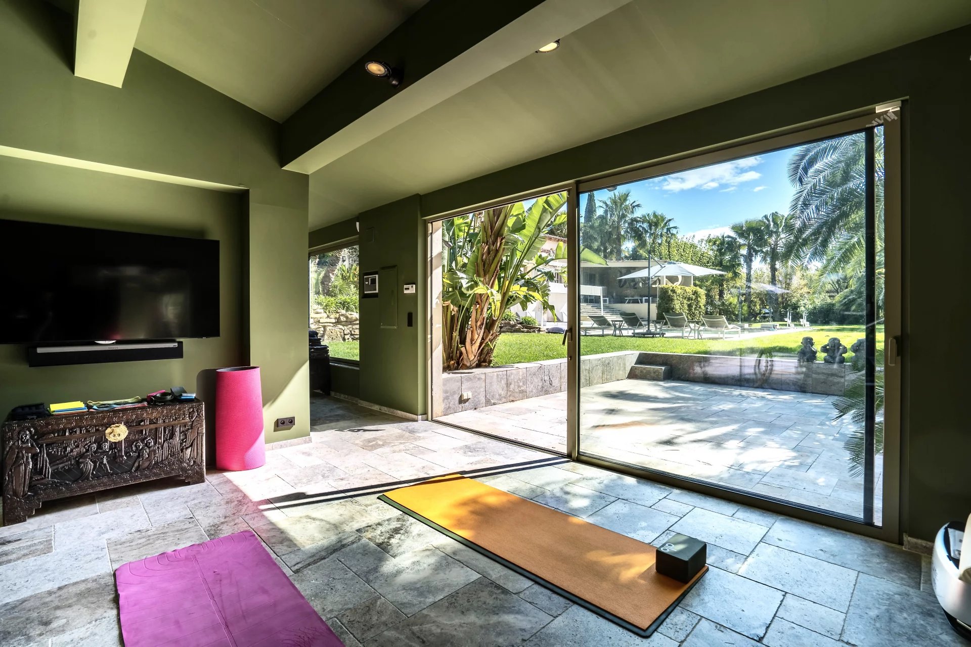 Cinq chambres dont une suite parentale sont réparties sur les 2 niveaux. La villa bénéficie d'une salle de sport, d'un sauna et d'une