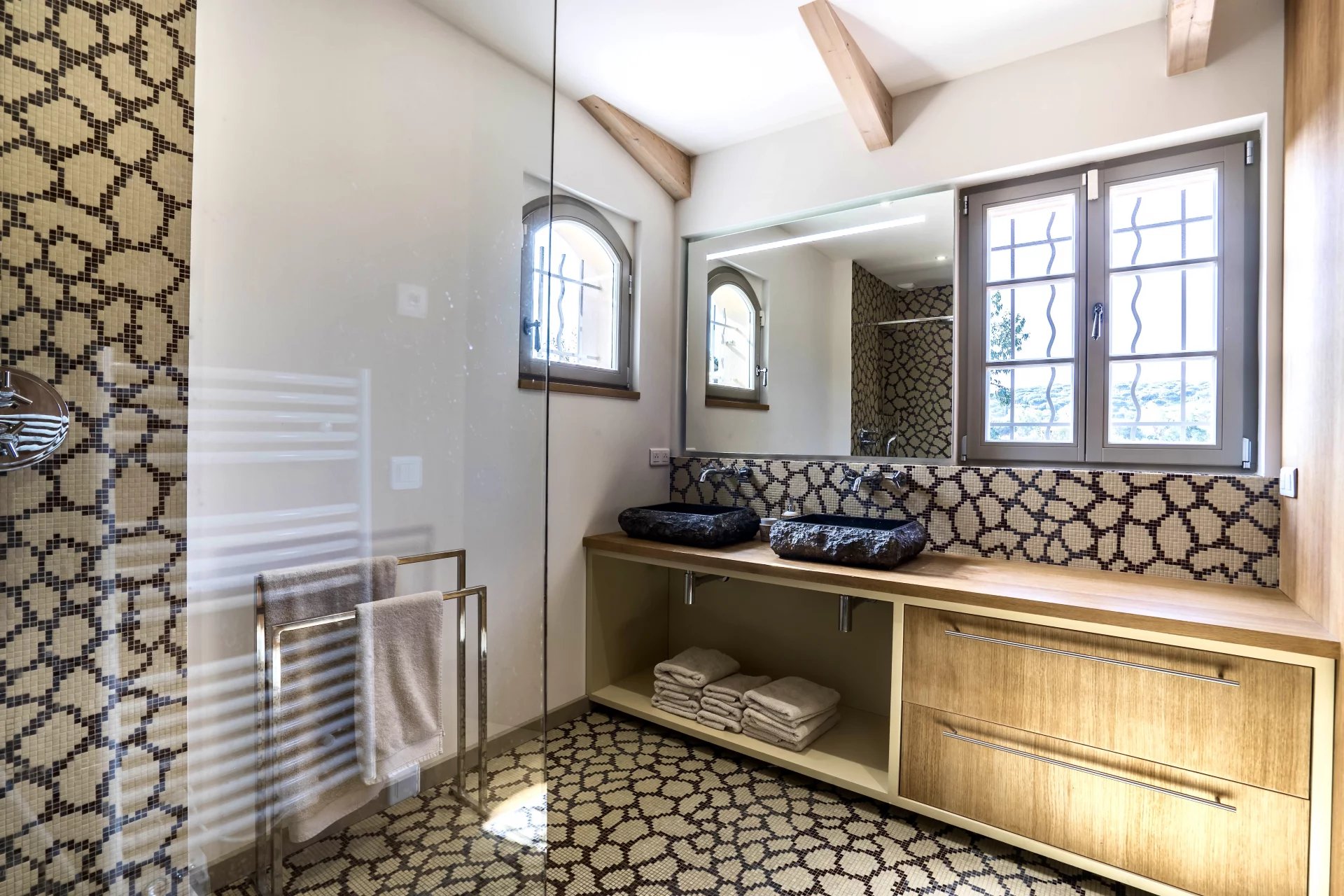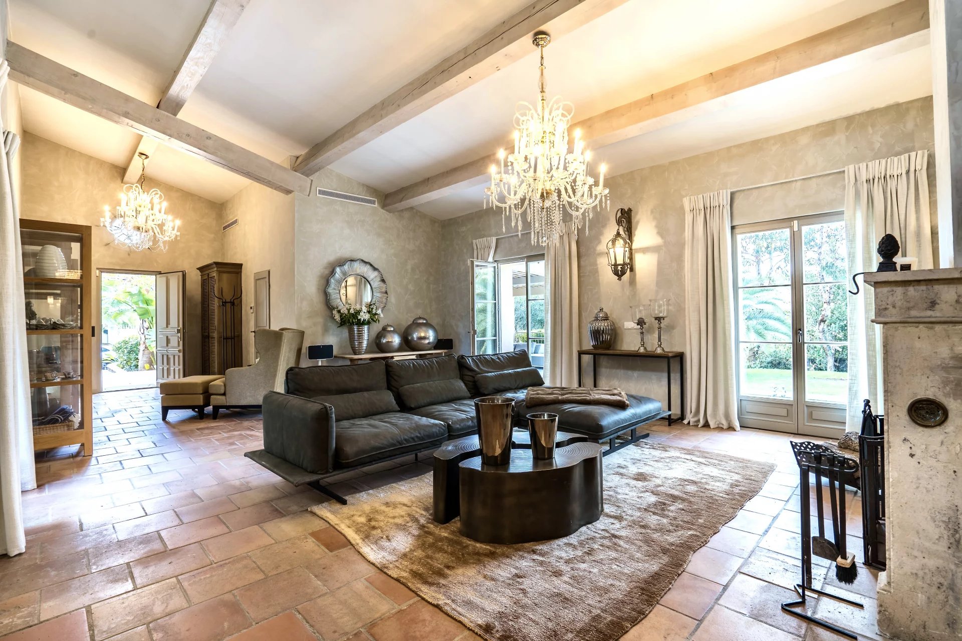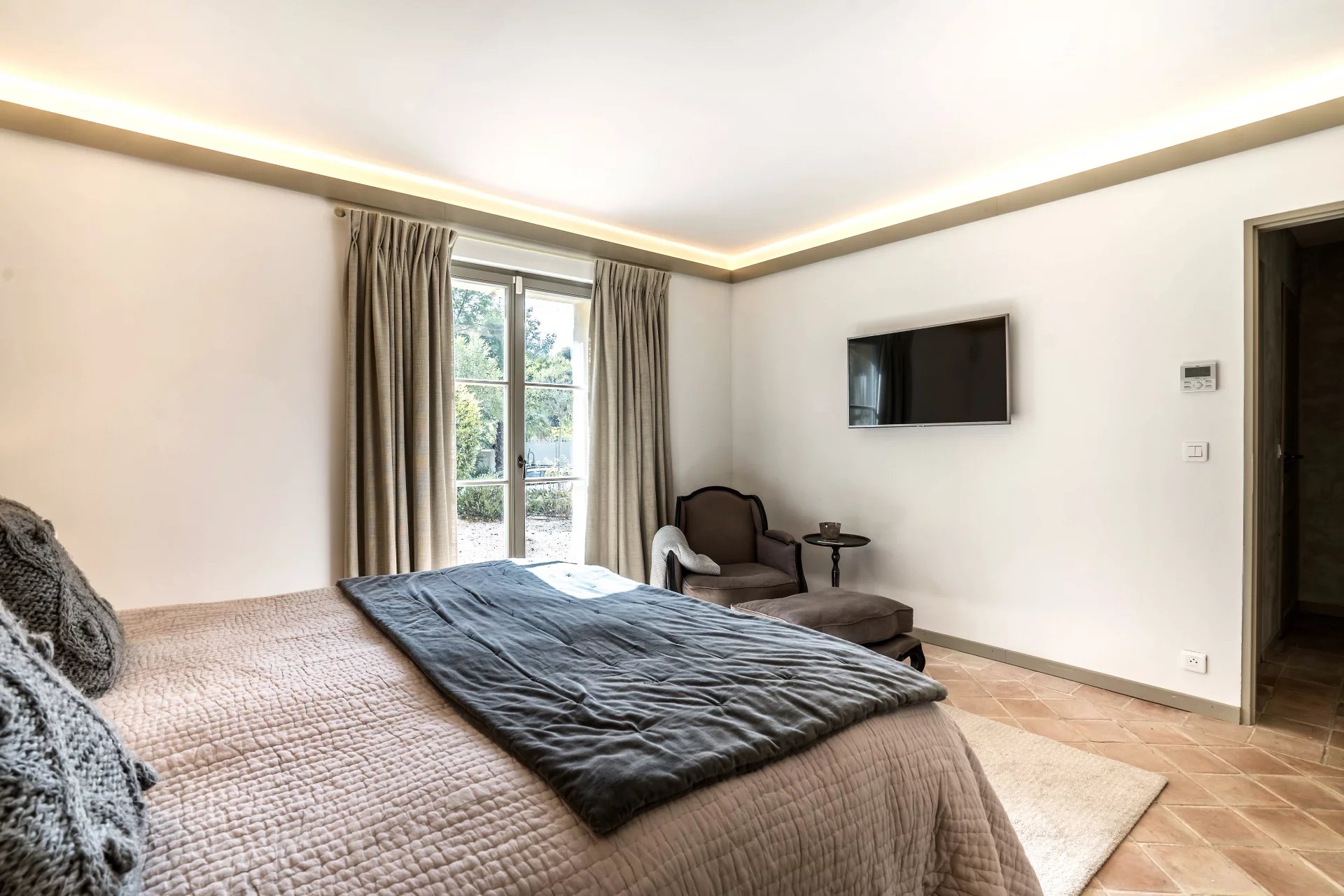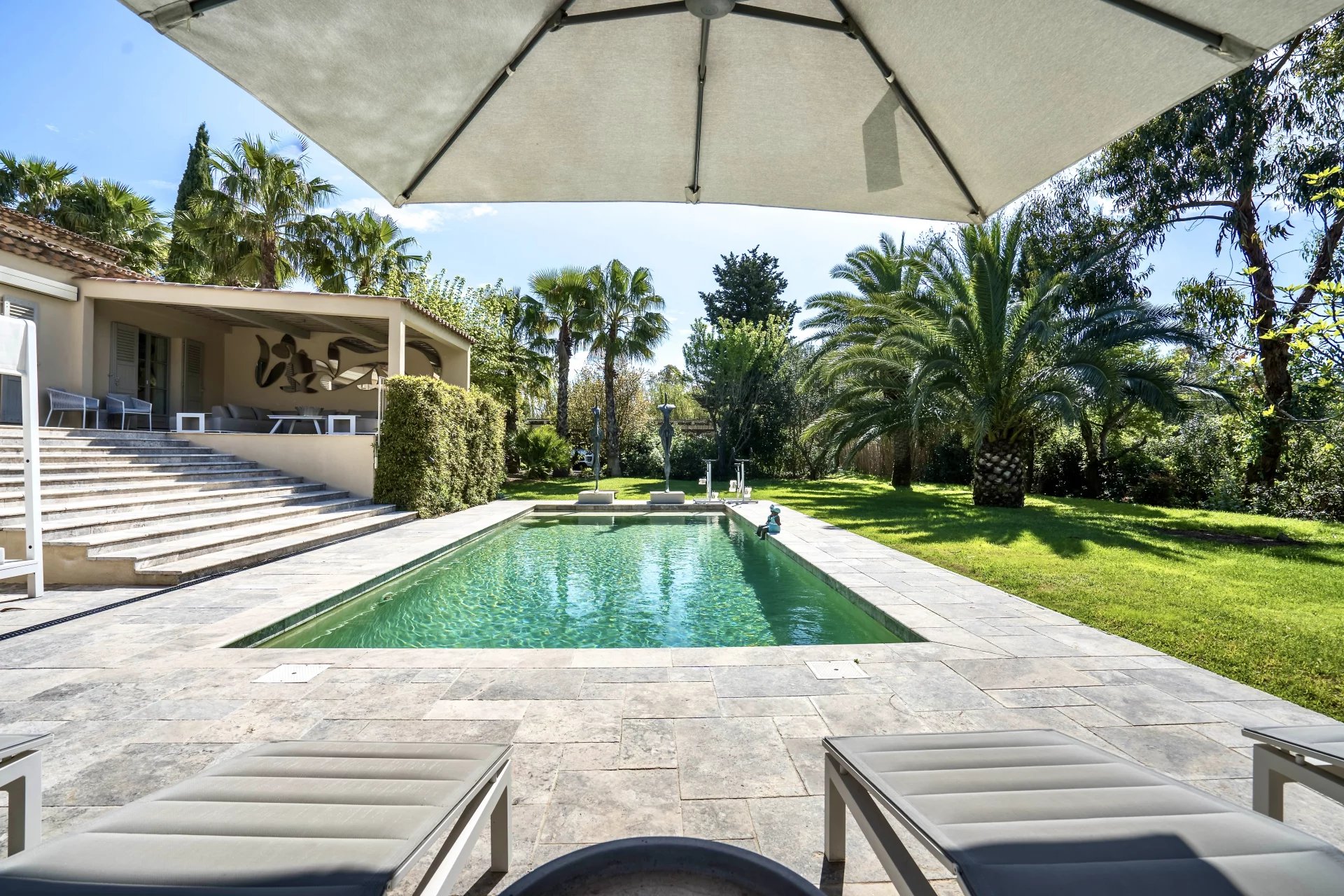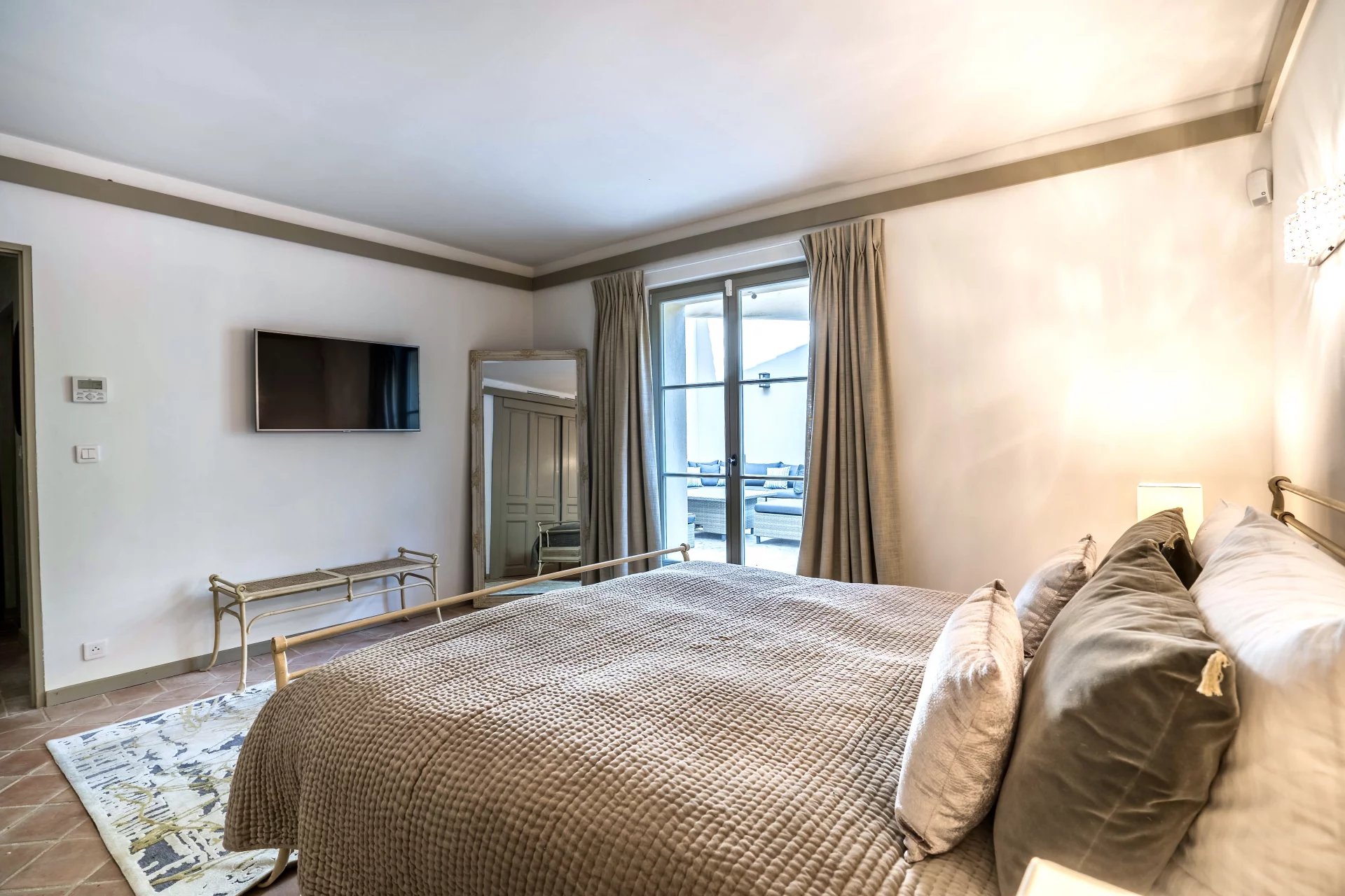 Cinq chambres dont une suite parentale sont réparties sur les 2 niveaux. La villa bénéficie d'une salle de sport, d'un sauna et d'une