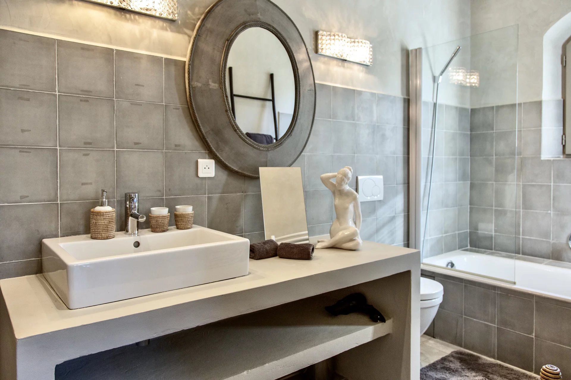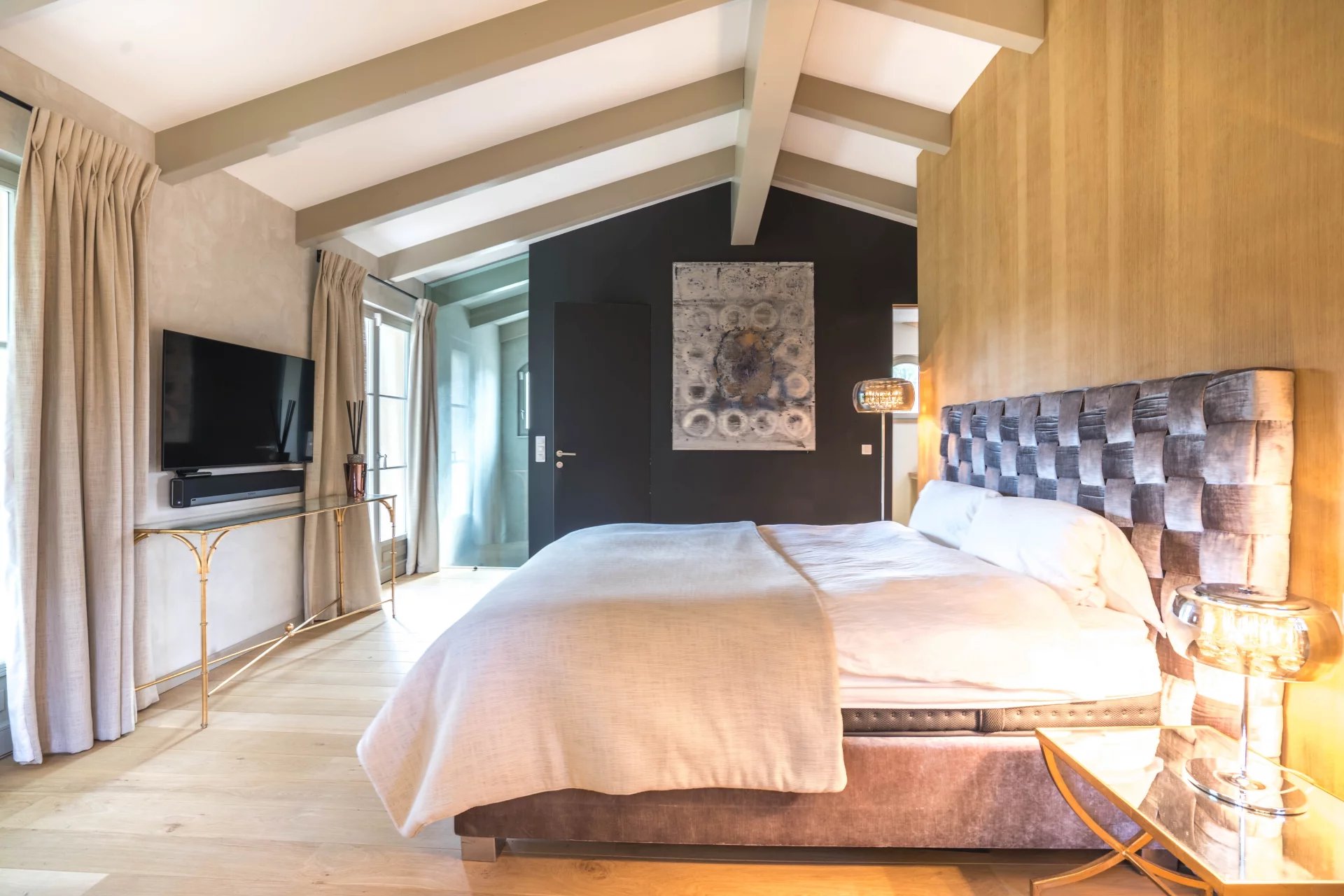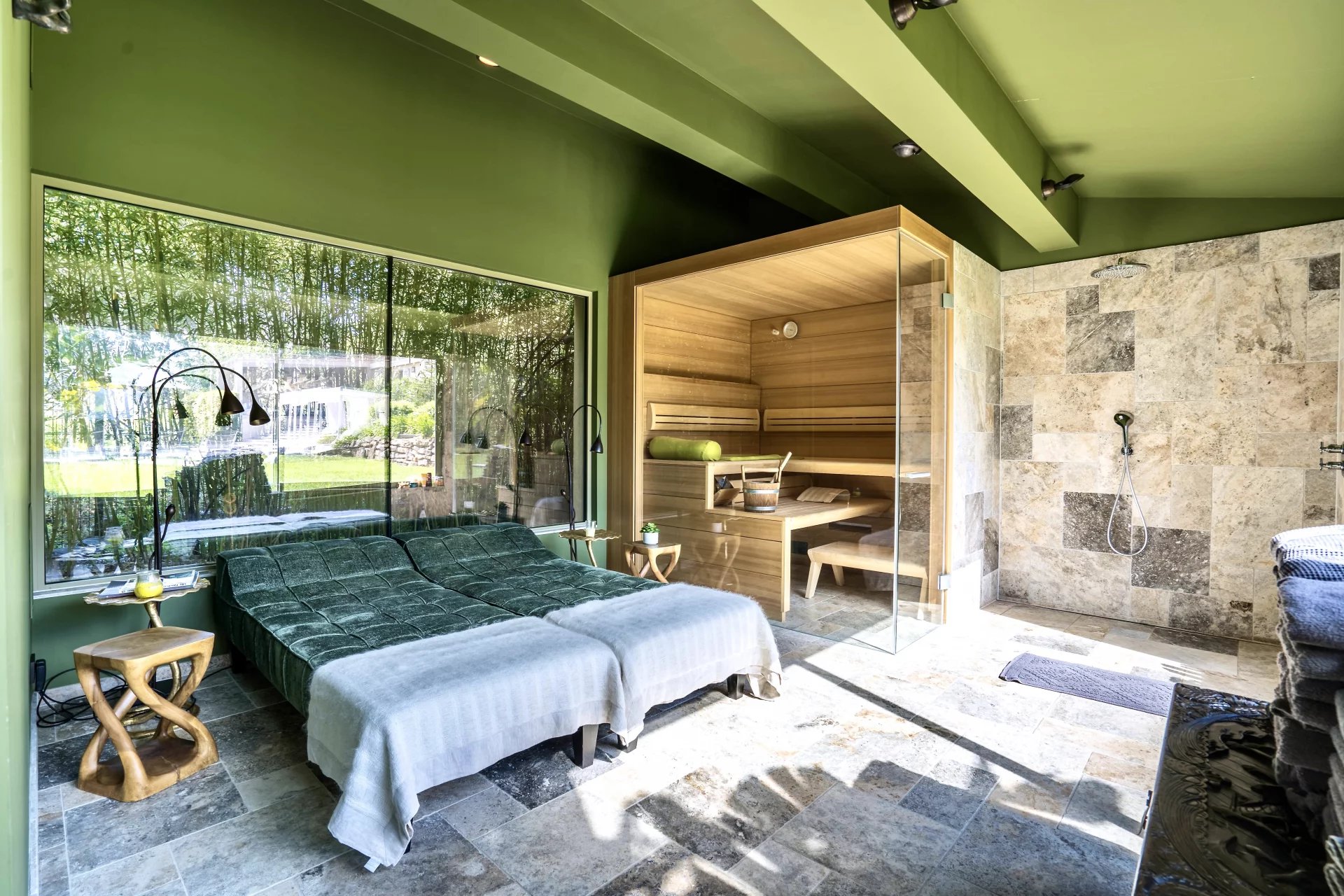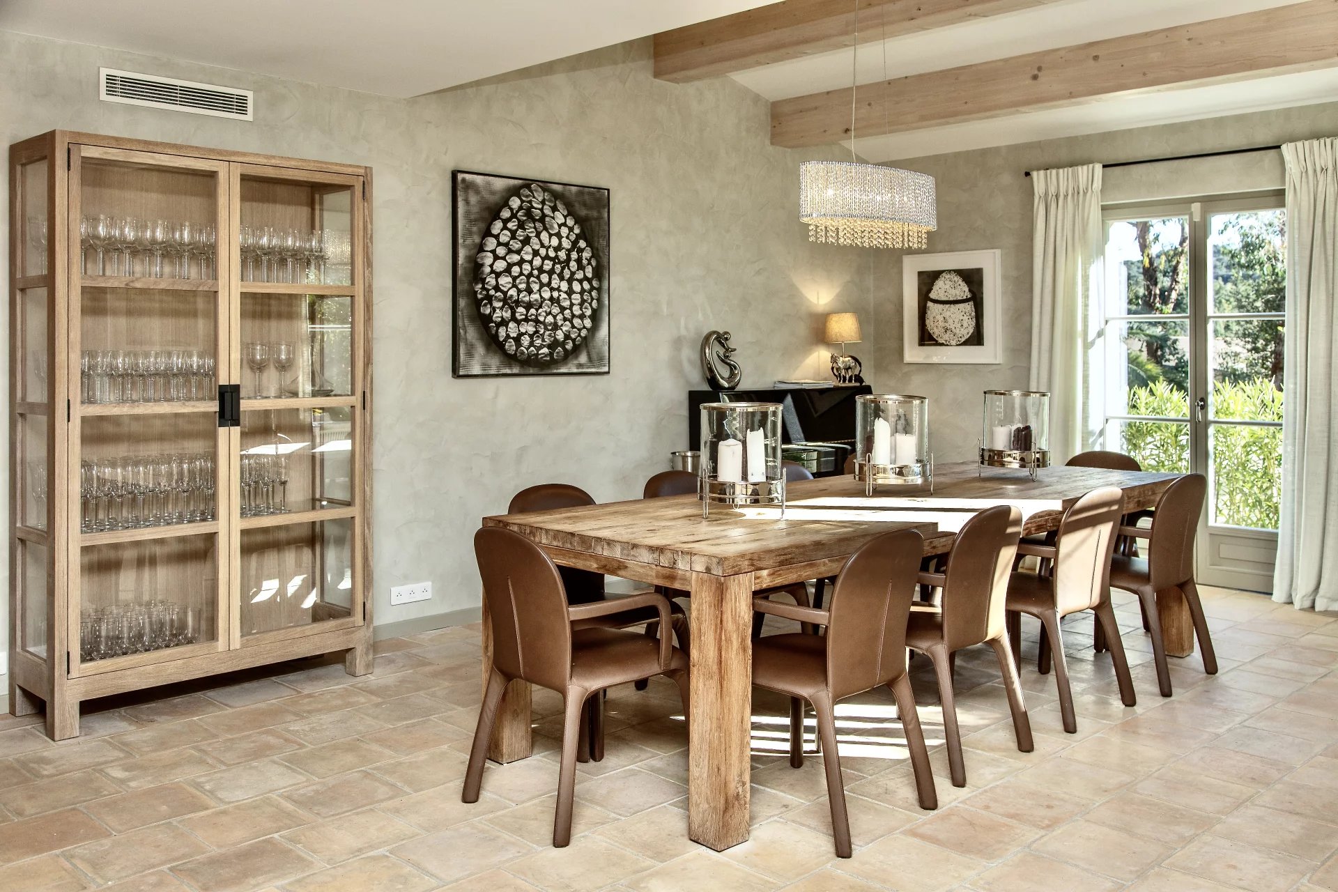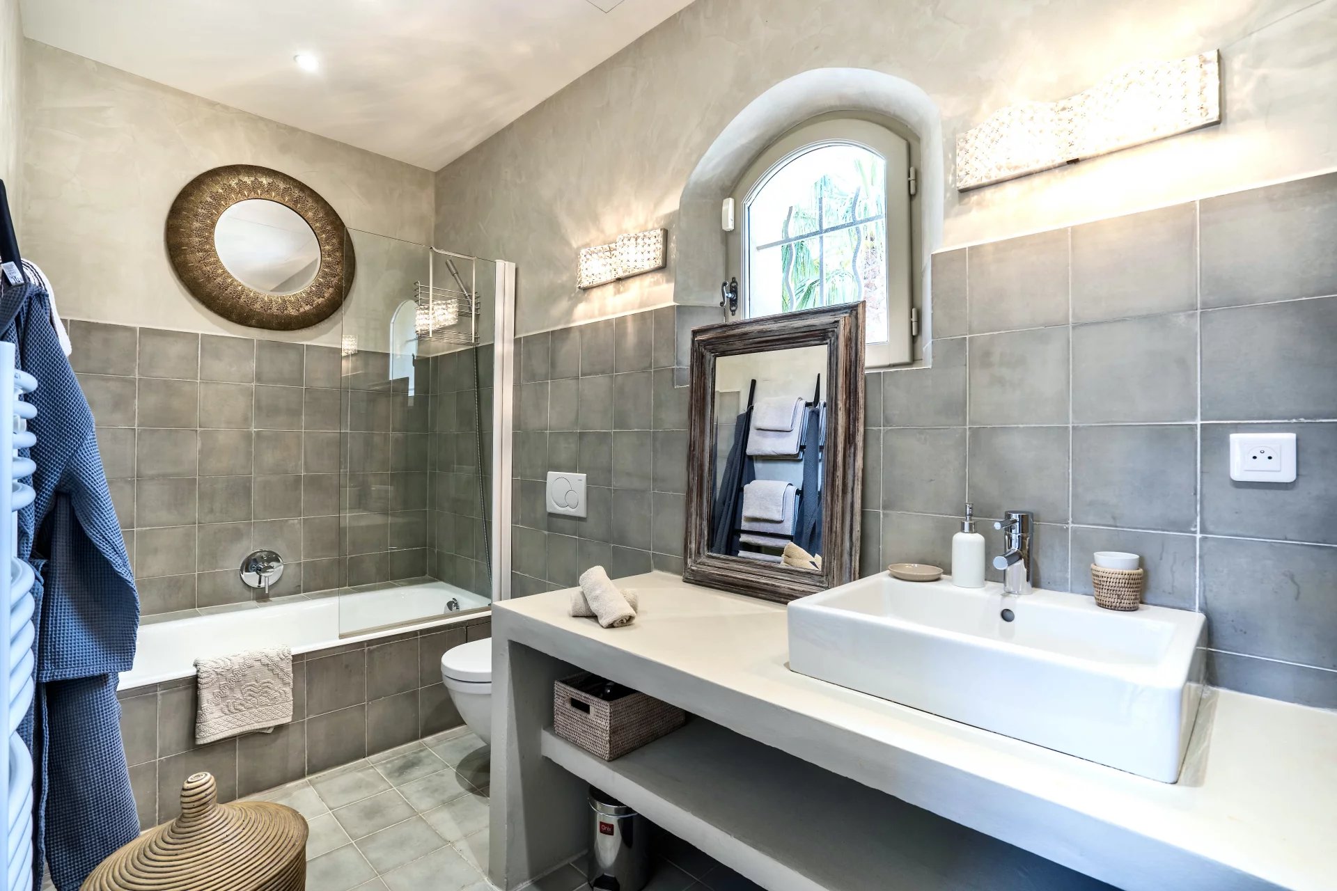 Cinq chambres dont une suite parentale sont réparties sur les 2 niveaux. La villa bénéficie d'une salle de sport, d'un sauna et d'une