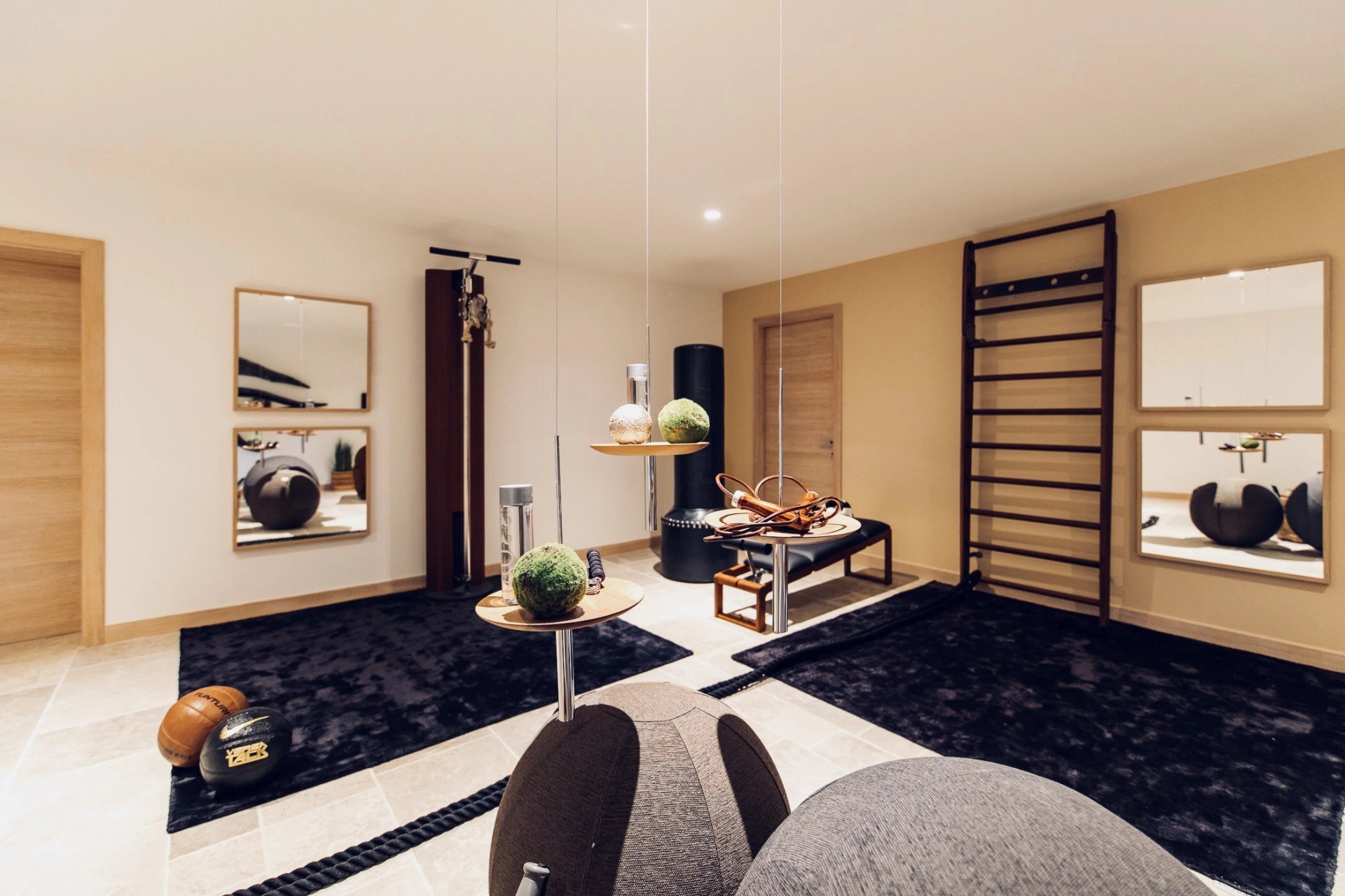 Au niveau inférieur,on découvre cinq grandes suites avec salle de bains, dressing et terrasses individuelles, également une splendide cave à vin, un espace dédié à la remise en forme et au bien-être. Un cadre privé aménagé dans l’élégance, le confort et la discrétion.