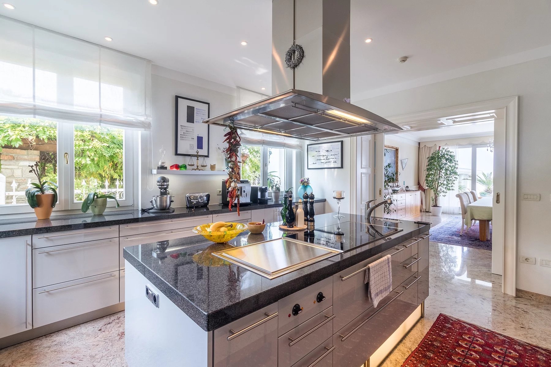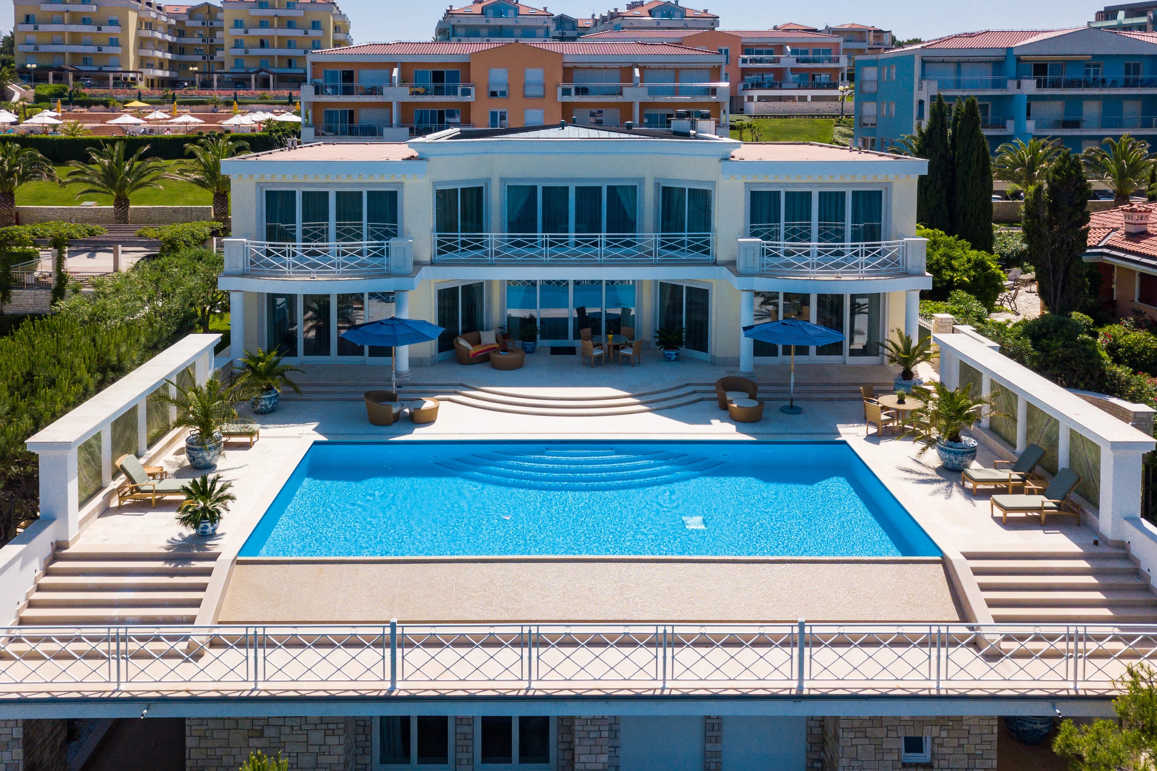 Located in the front row facing the sea in Umag, this prestigious villa of approximately 1'000 m² enjoys panoramic views over the sea, the Slovenian and Italian coastlines, and the Alps.