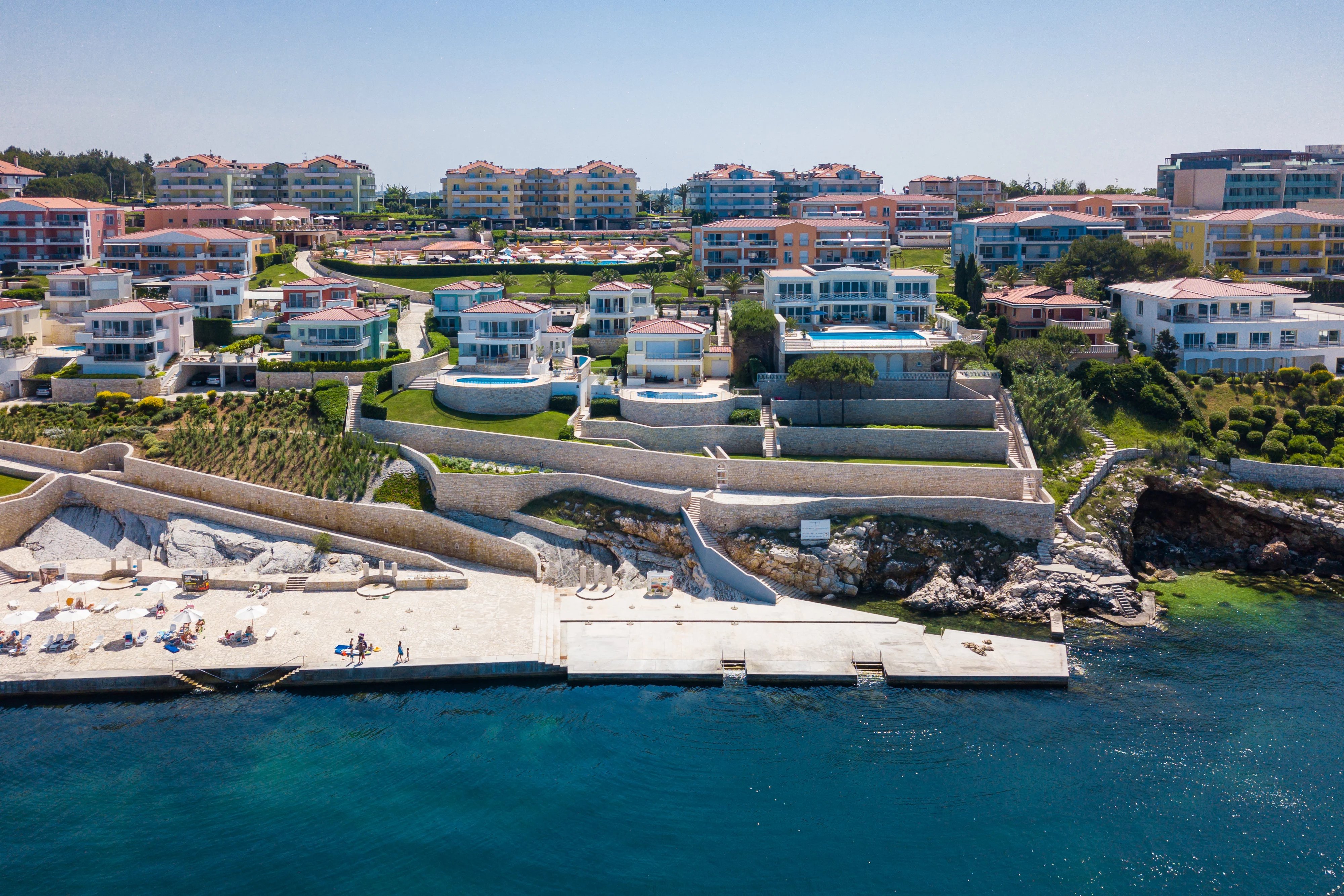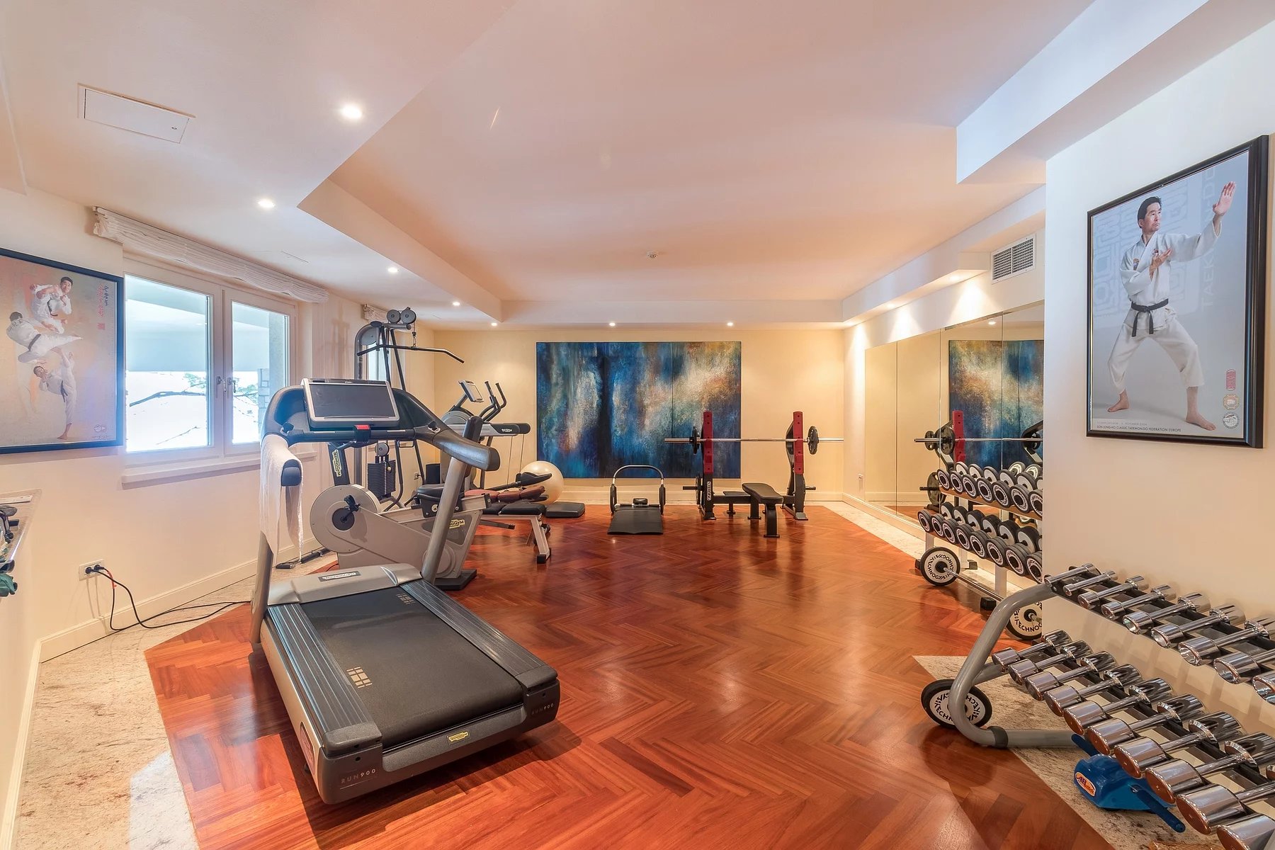 The basement includes a private gym, sauna, wine cellar, games room and CCTV room, with direct access to the landscaped gardens and the beach.