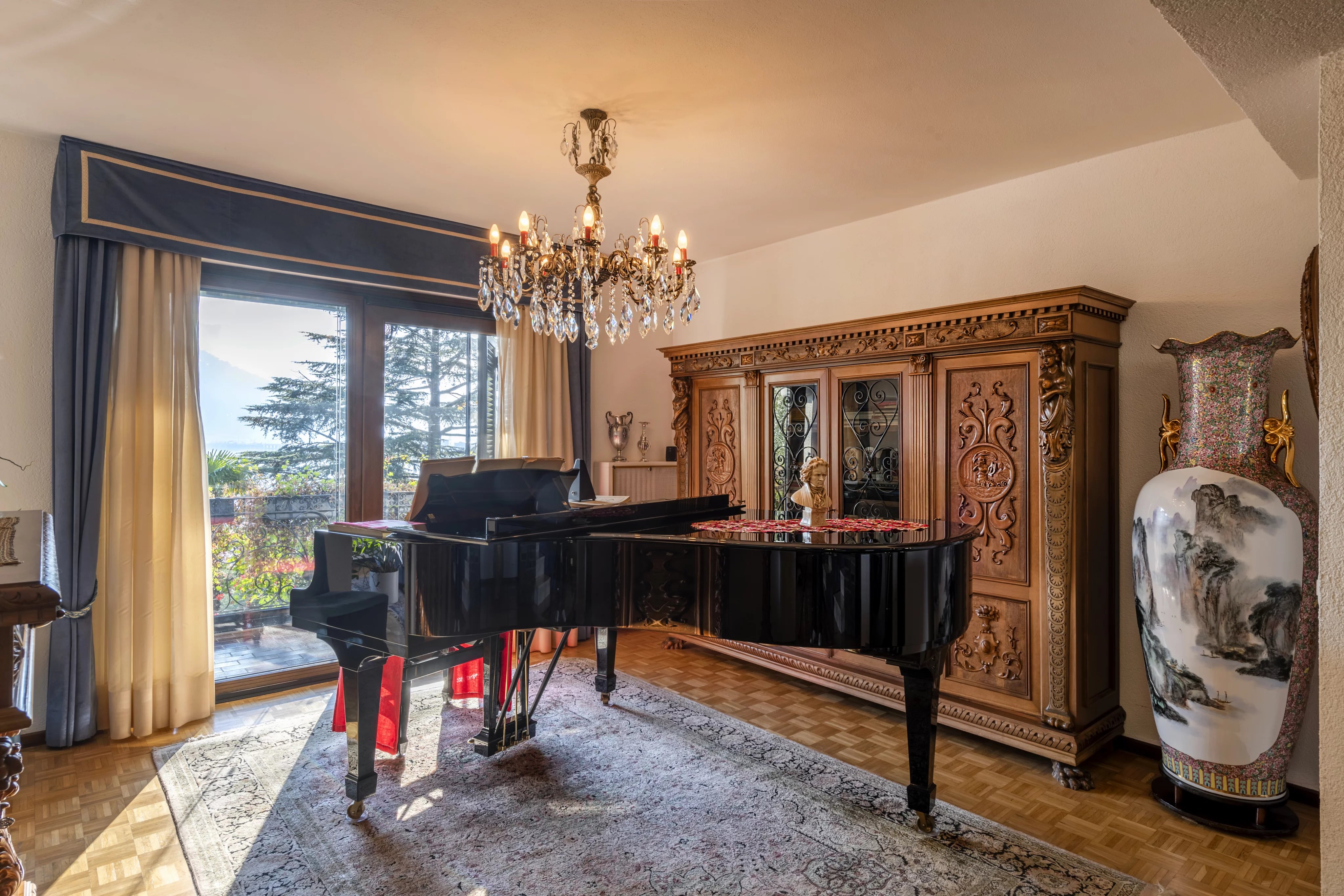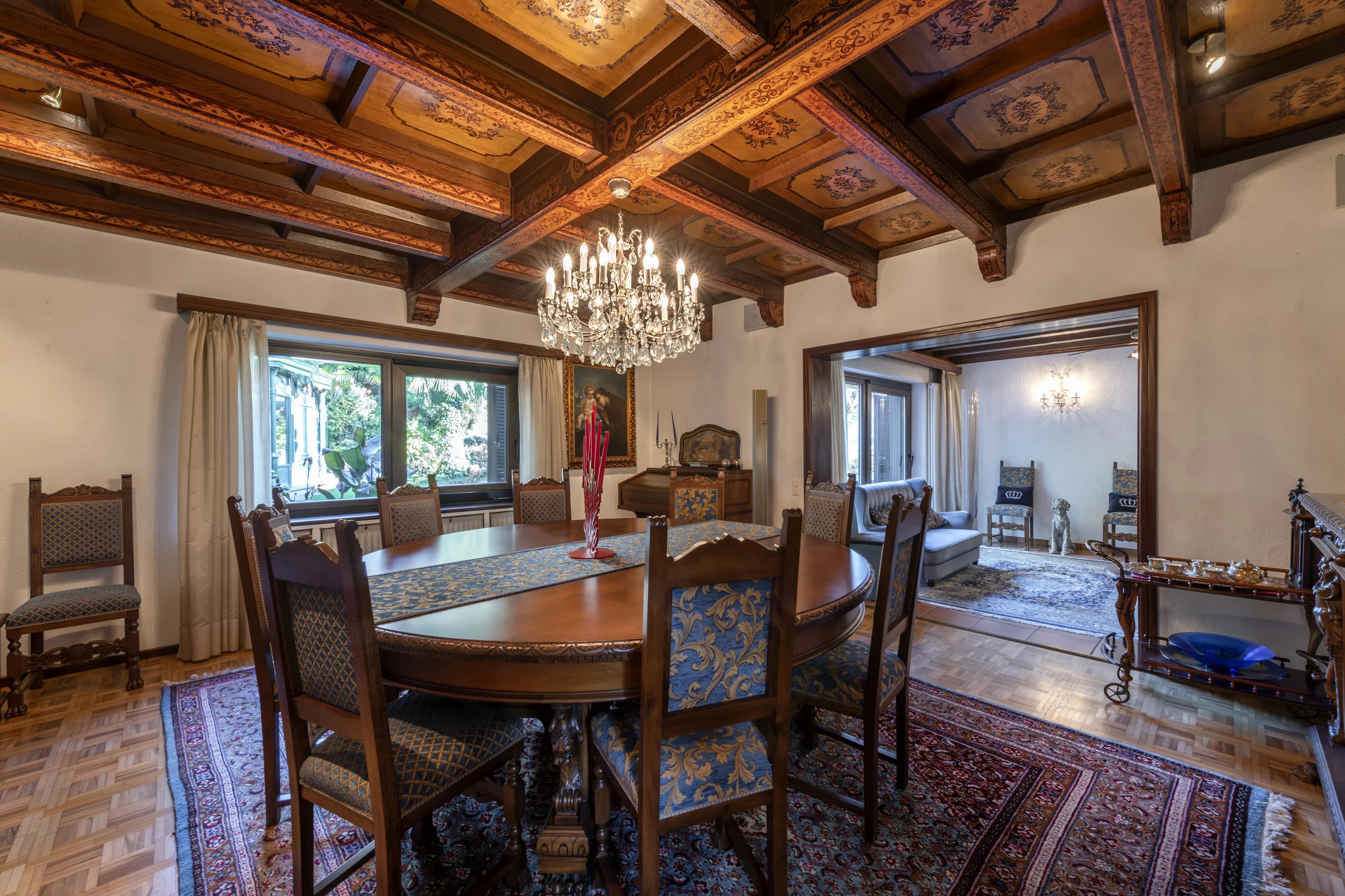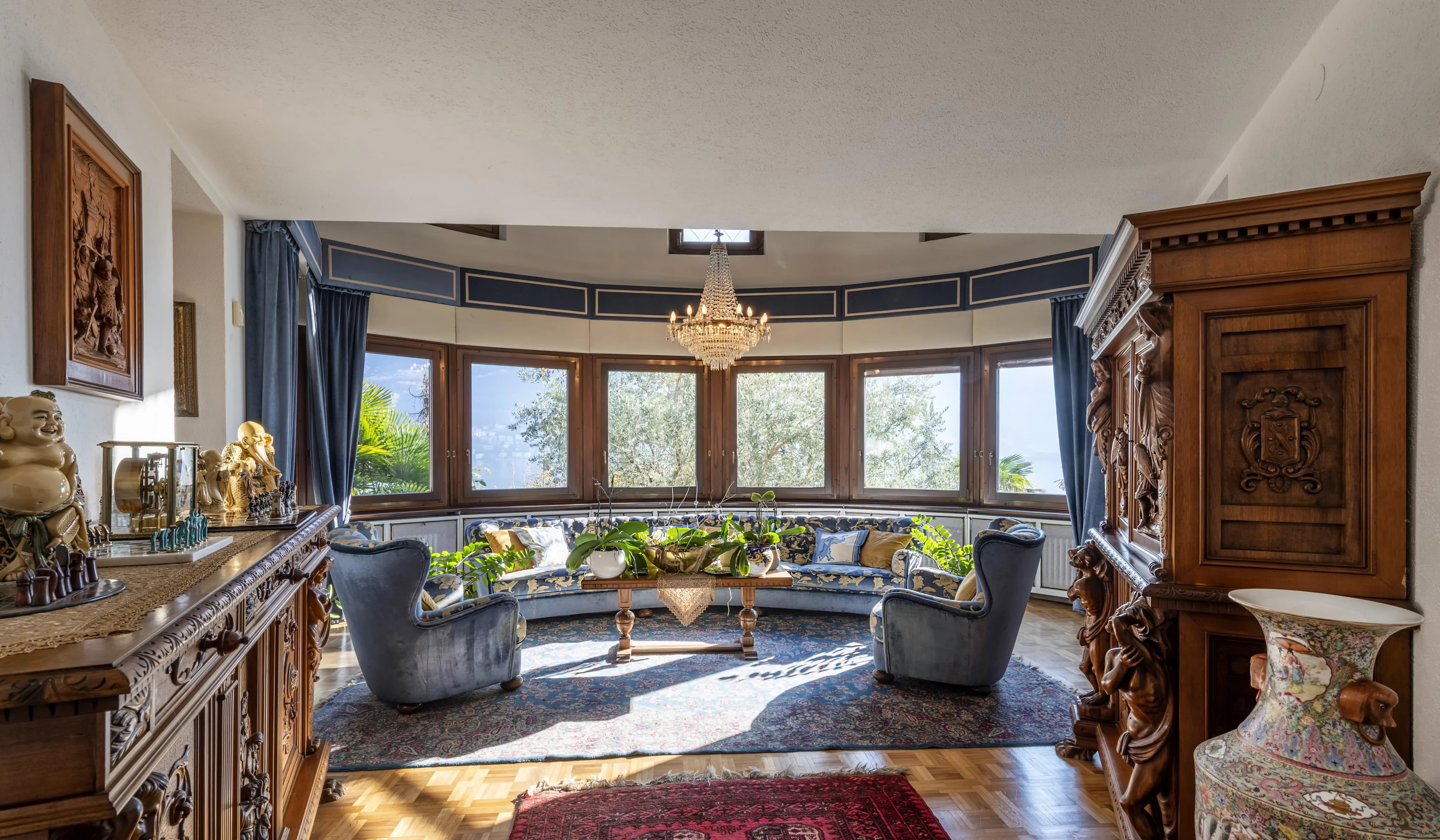 Striking property with spectacular 180-degree views of the lake and surrounding mountains.A true symbol of peace and natural beauty. Renovated between 2008 and 2013 with an investment of around CHF 3 million, this property harmoniously combines elegance and comfort. In early 2024, 38 photovoltaic panels were installed on the roof.The generous layout also allows for the creation of a separate home office area?ideal for privacy and relaxation in the midst of lush greenery.Recent renovations include a charming winter garden and a large heated indoor swimming pool with a retractable dome, allowing for year-round use. There is also potential for a spa and fitness area. The expansive garden offers plenty of space for hobbies such as gardening and growing fresh vegetables and fruit.The basement features a cozy tavern with a traditional grottino, a staff apartment, laundry room, and wine cellar.The ground floor includes a modern, fully equipped kitchen, an inviting dining room, a panoramic living room, a spacious study, a bright sitting room, a large garden, and a panoramic terrace.Upstairs are two bedrooms with walk-in wardrobes, a double garage, a dividable multipurpose room, and two bathrooms.The 2-room apartment has its own private entrance, an open kitchen, a bathroom, and a bedroom with direct access to the garden and lake view.Contact us for more information or to schedule a viewing!